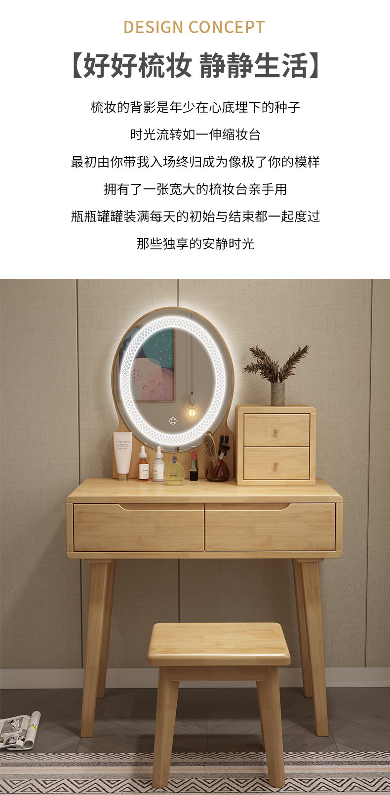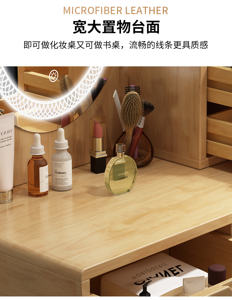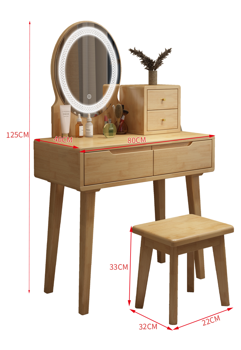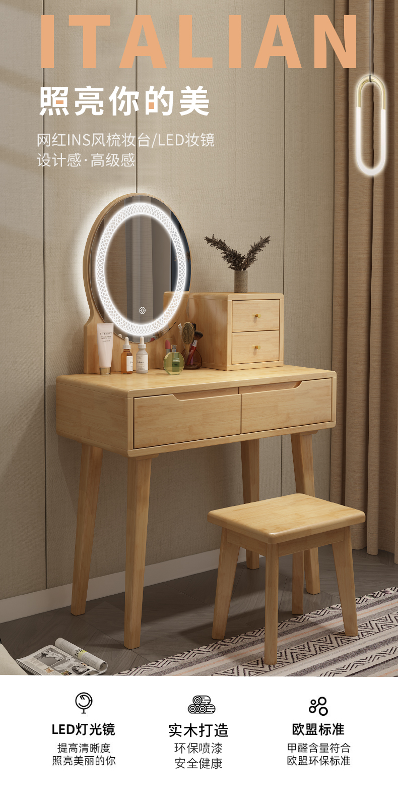 Bàn trang điểm bằng gỗ nguyên khối Bắc Âu phòng ngủ hiện đại tối giản tủ lưu trữ một lưới màu đỏ in gió bàn trang điểm mini nhỏ