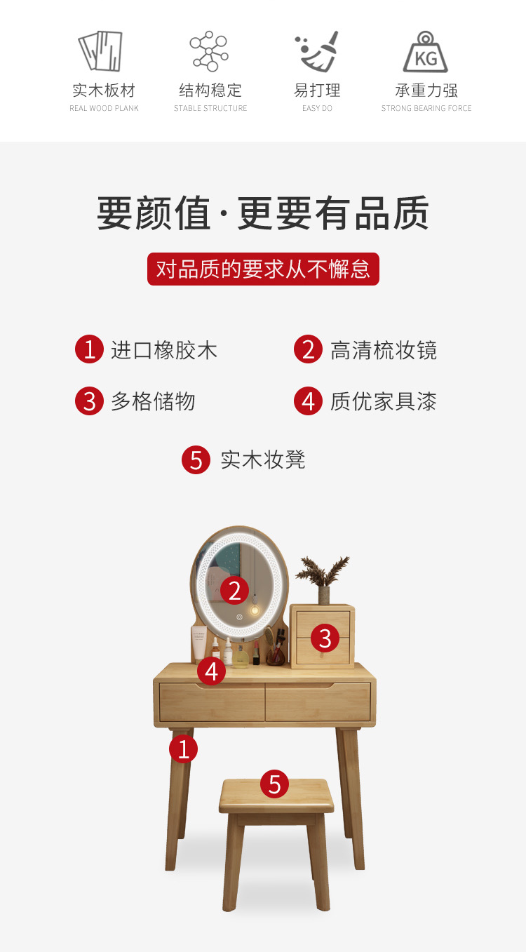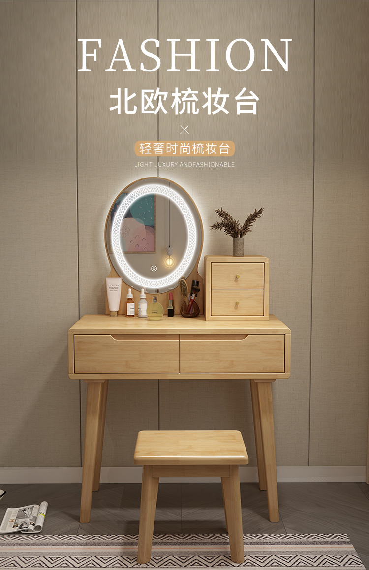 Bàn trang điểm bằng gỗ nguyên khối kiểu Bắc Âu với đèn và gương tích hợp bàn trang điểm phòng ngủ nhỏ tối giản hiện đại bàn trang điểm màu đỏ ròng