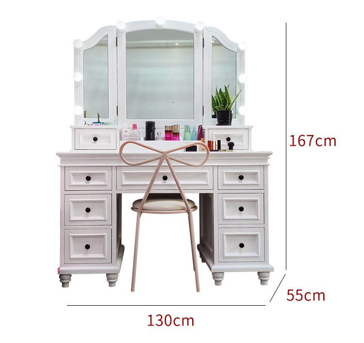 Bàn trang điểm bằng gỗ nguyên khối kiểu Mỹ phòng ngủ phòng ngủ chính năm 2021 mới hiện đại tối giản với đèn trong bàn / bàn trang điểm màu đỏ ròng