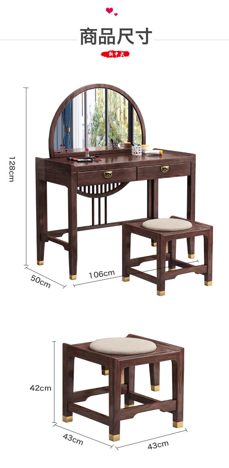 Bàn trang điểm bằng gỗ nhập khẩu, kiểu dáng cổ điển.