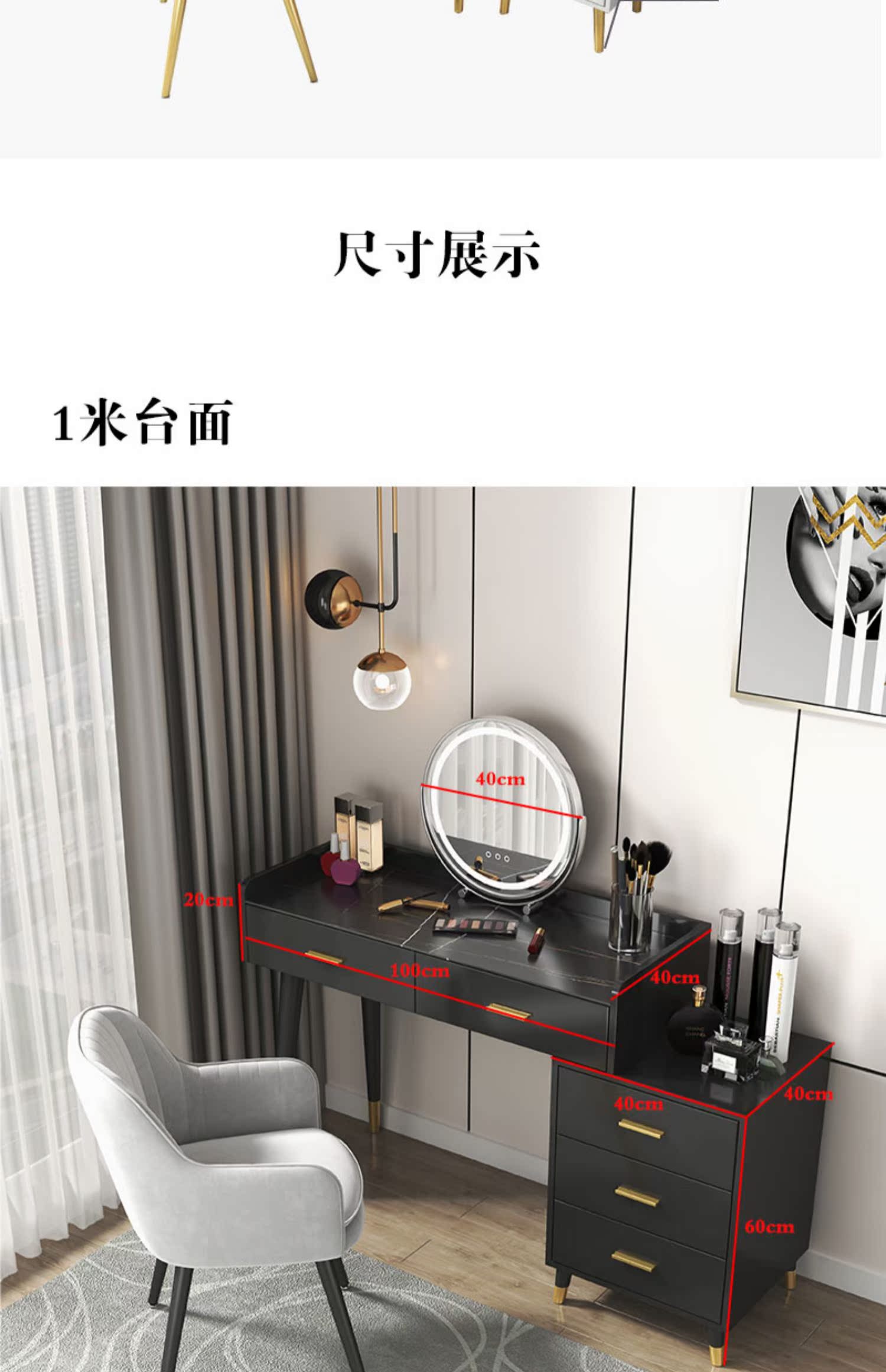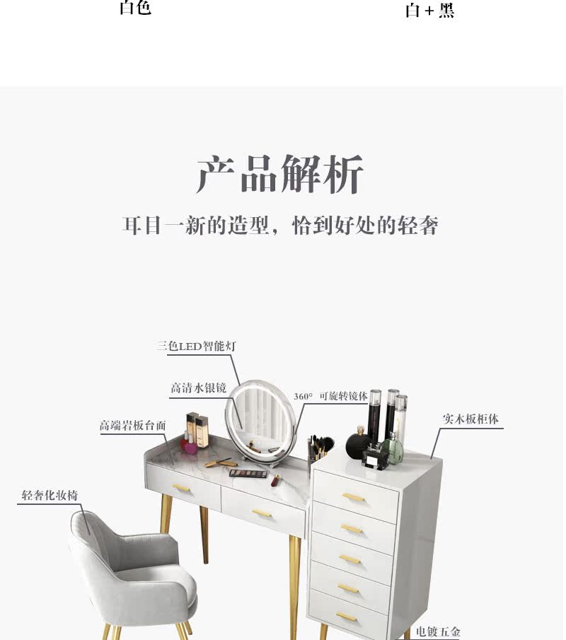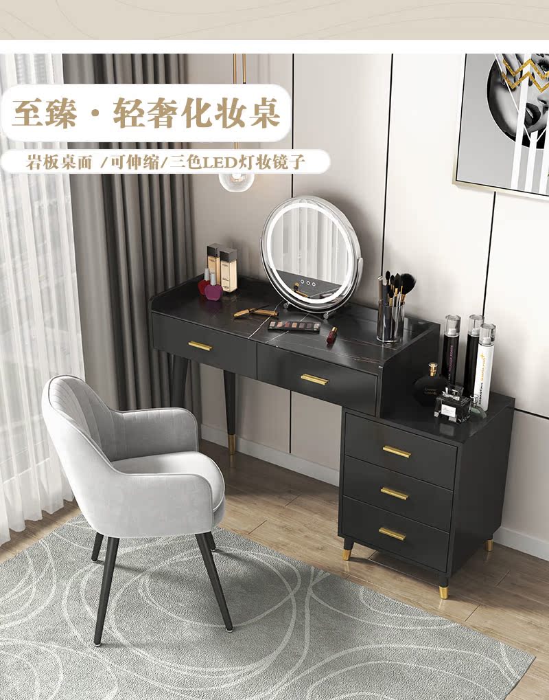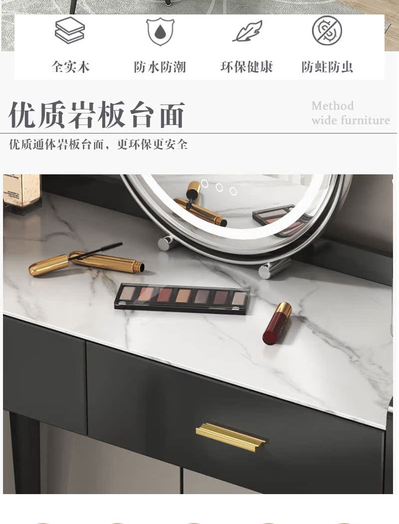 Bàn trang điểm bằng gỗ phiến nguyên khối tủ tích hợp bàn trang điểm hiện đại tối giản mới 2022 phòng ngủ ánh sáng sang trọng kiểu Bắc Âu