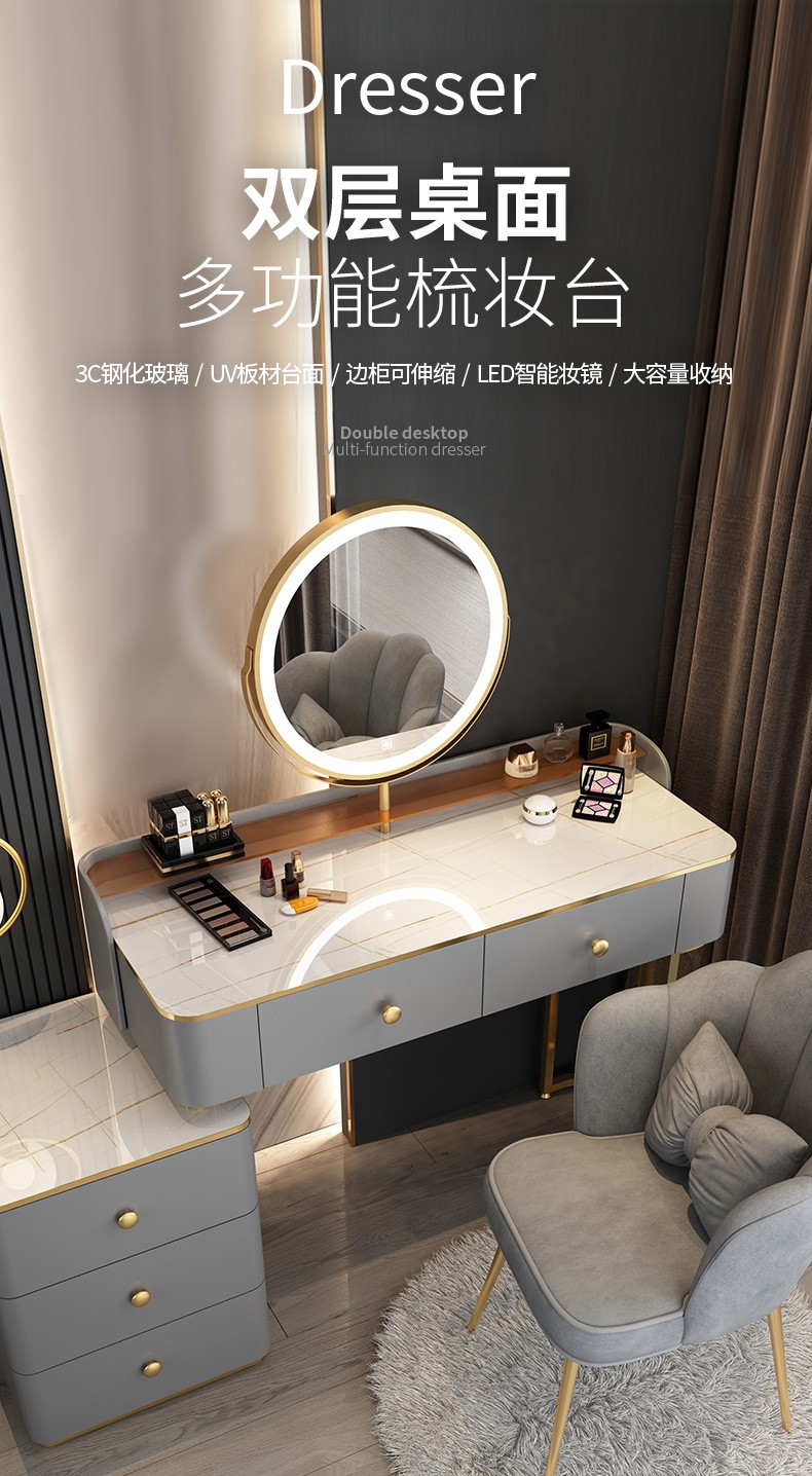 Bàn trang điểm cao cấp nhẹ nhàng sang trọng bàn trang điểm đơn giản hiện đại đa năng bàn trang điểm gỗ nguyên khối hai lớp bàn trang điểm phòng ngủ chung cư nhỏ