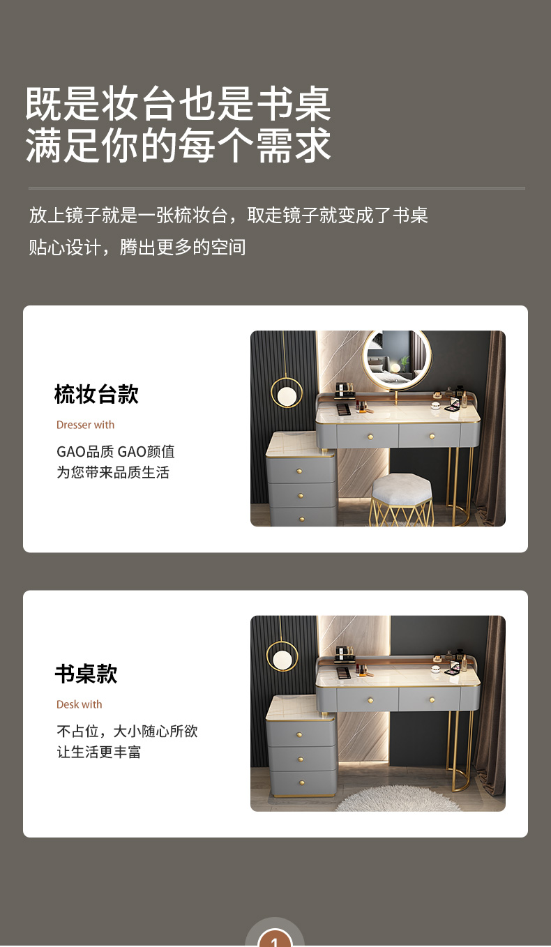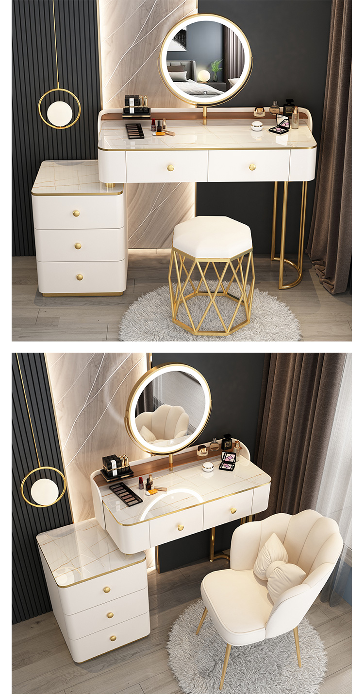 Bàn trang điểm cao cấp nhẹ nhàng sang trọng phòng ngủ tủ để đồ hiện đại đơn giản bàn trang điểm gỗ nguyên khối hai lớp bàn trang điểm chung cư nhỏ