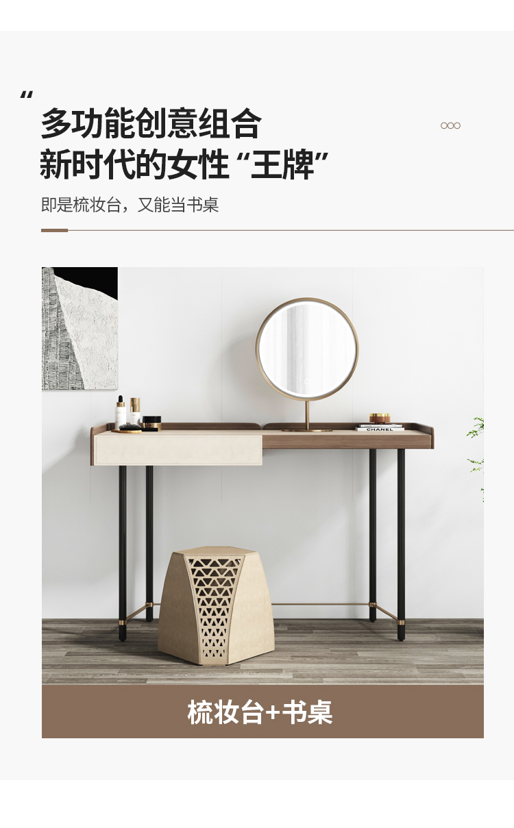 Bàn trang điểm da yên tối giản kiểu Ý 1m có gương trang điểm sáng bóng sang trọng hiện đại tối giản sáng tạo bàn trang điểm thiết kế sáng tạo