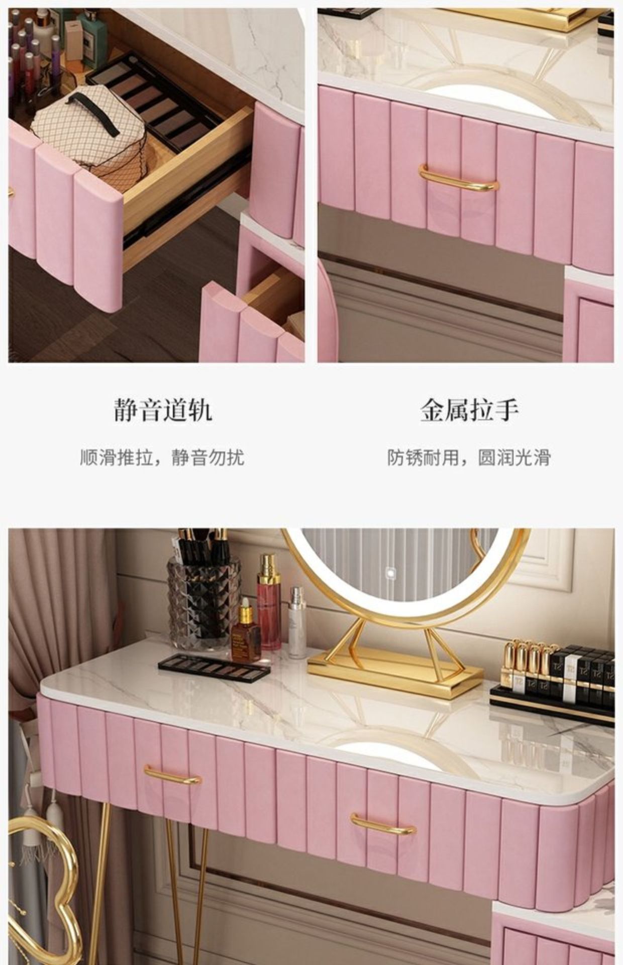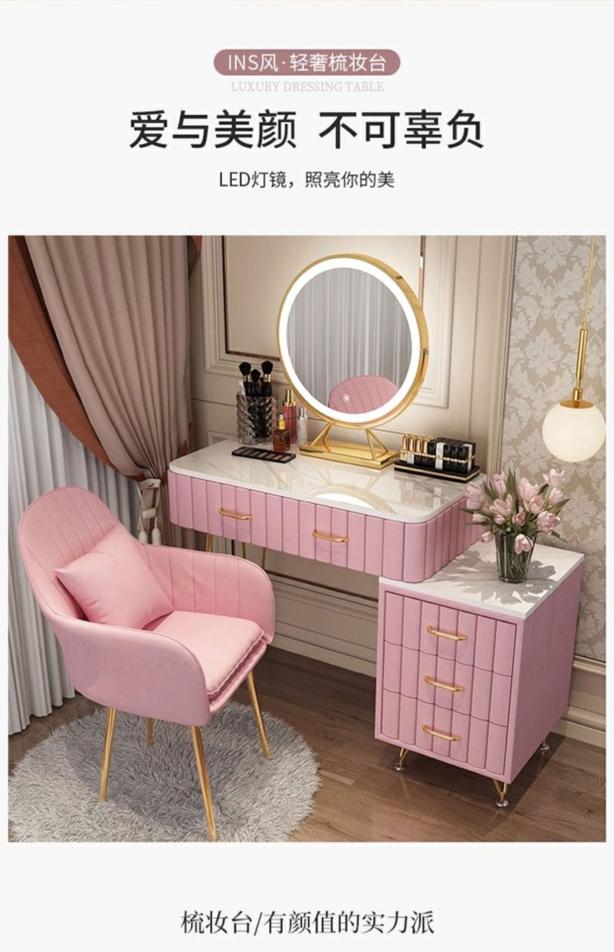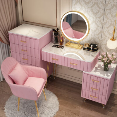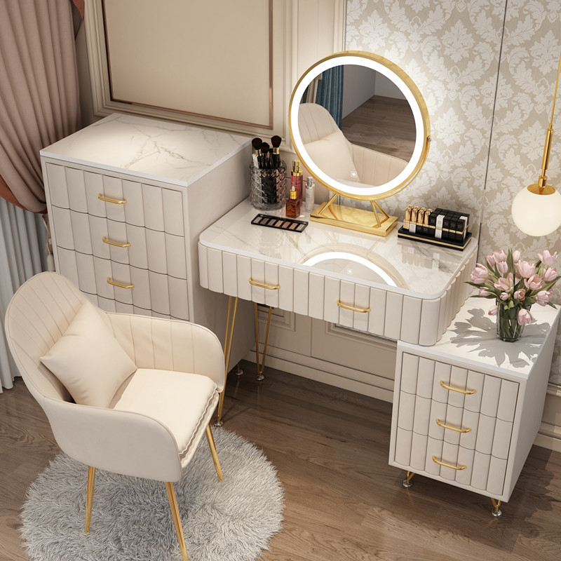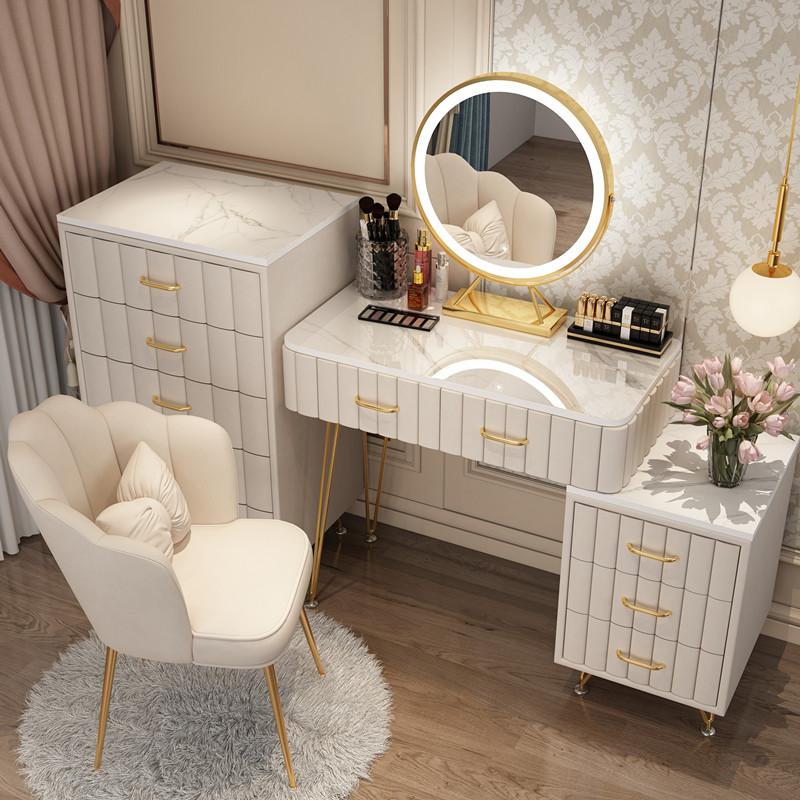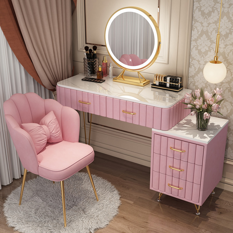 Bàn trang điểm giả đá cẩm thạch phòng ngủ lưới ins đỏ phong cách tối giản hiện đại tủ lưu trữ tích hợp bàn trang điểm căn hộ nhỏ