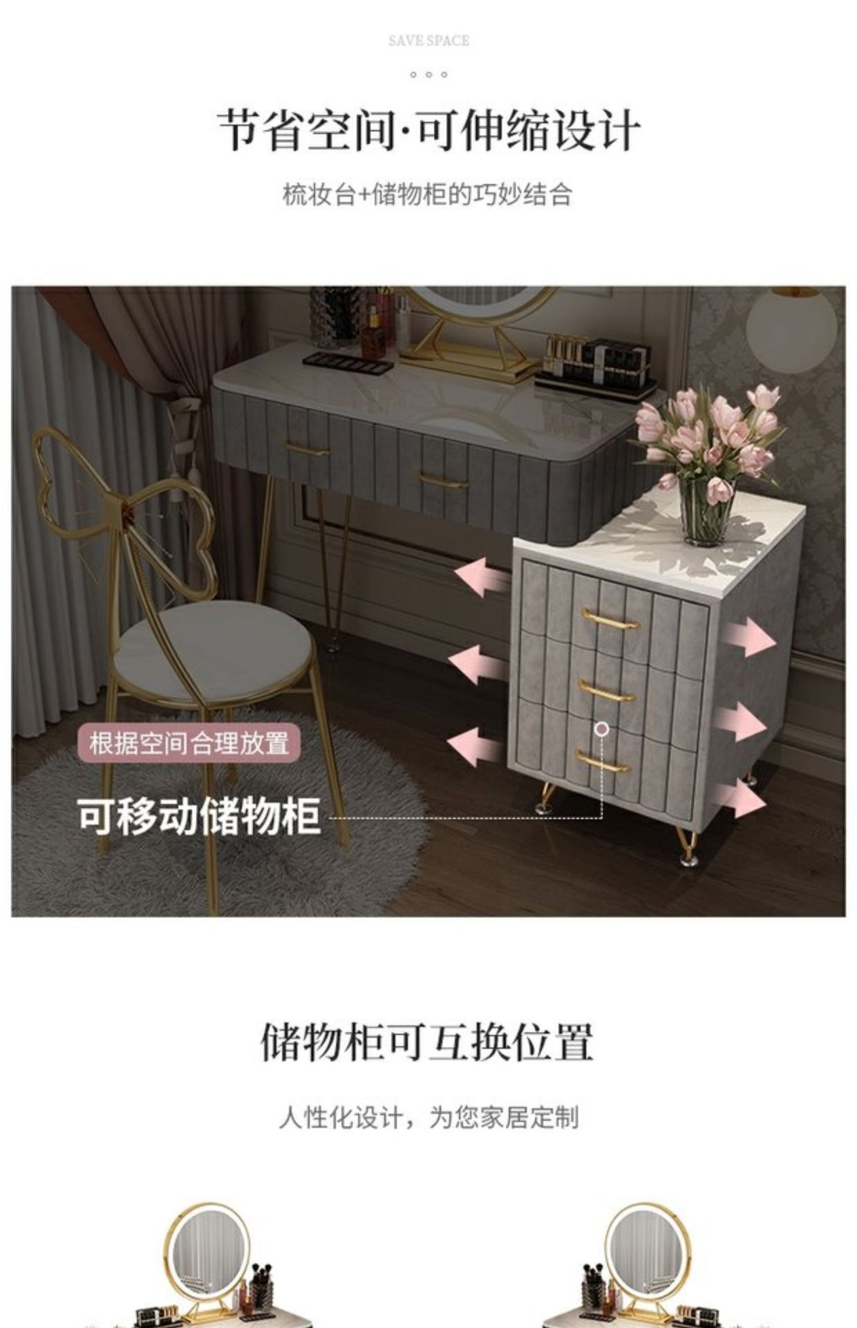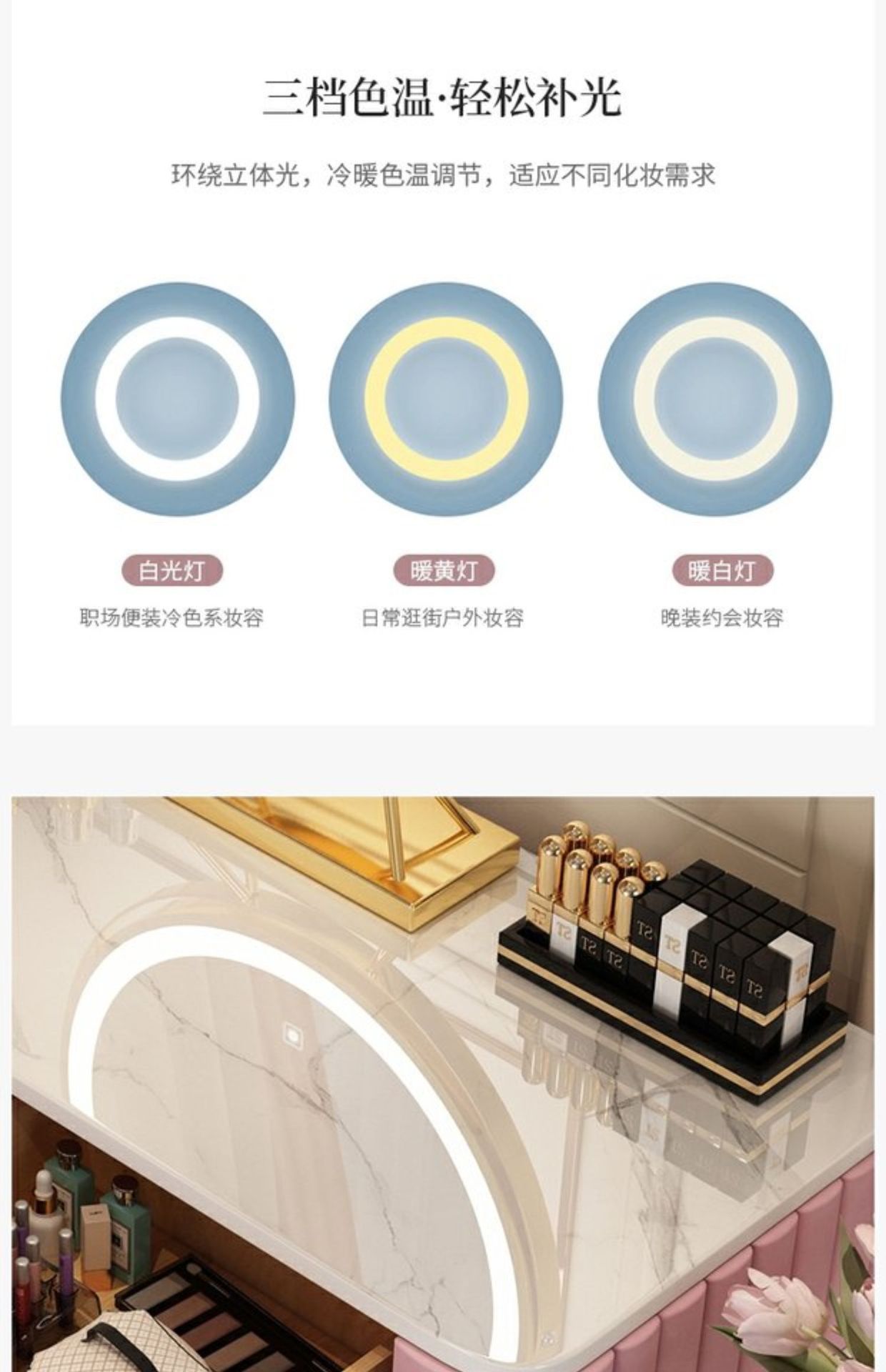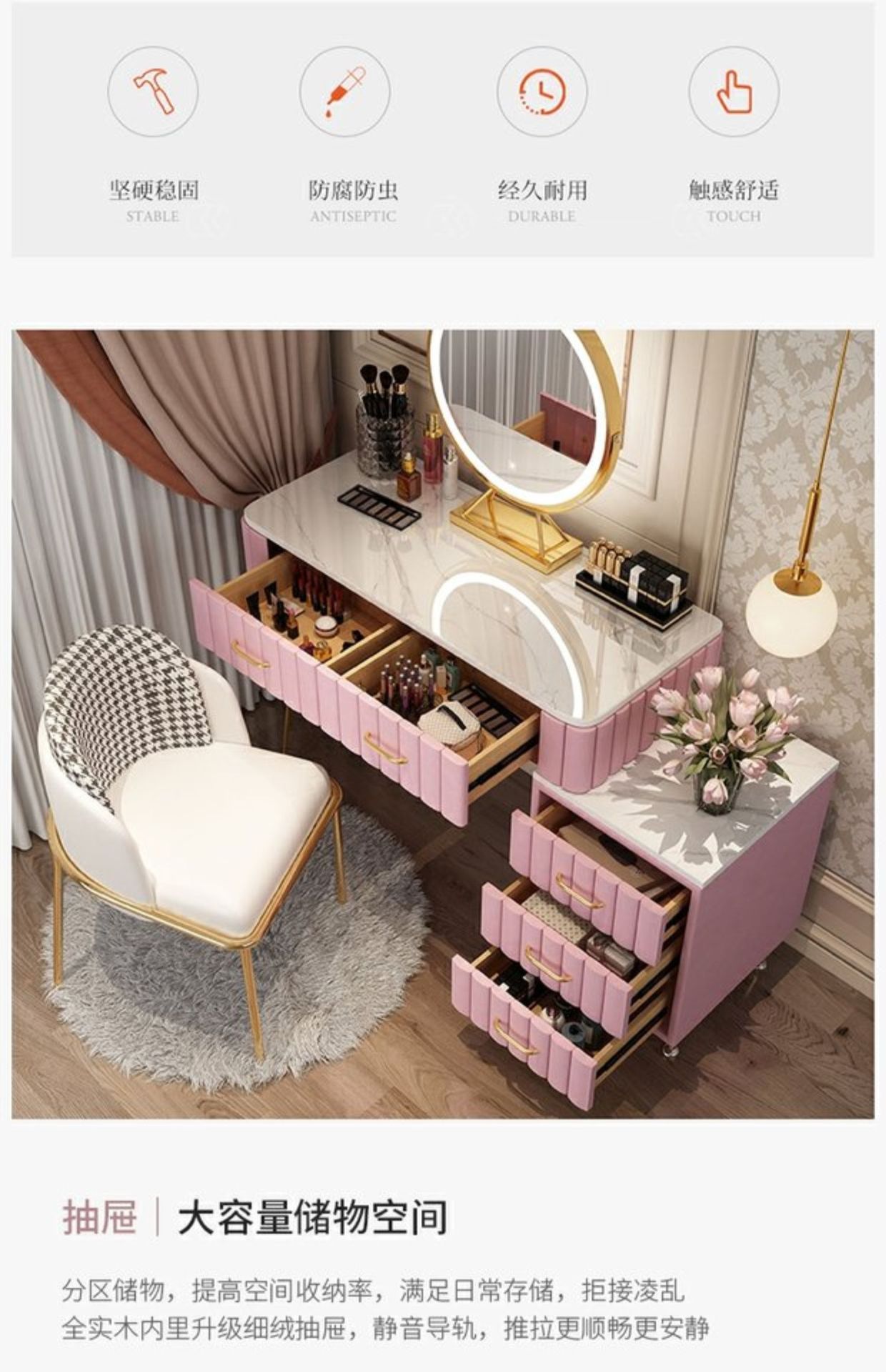 Bàn trang điểm giả đá cẩm thạch phòng ngủ lưới ins đỏ phong cách tối giản hiện đại tủ lưu trữ tích hợp bàn trang điểm căn hộ nhỏ