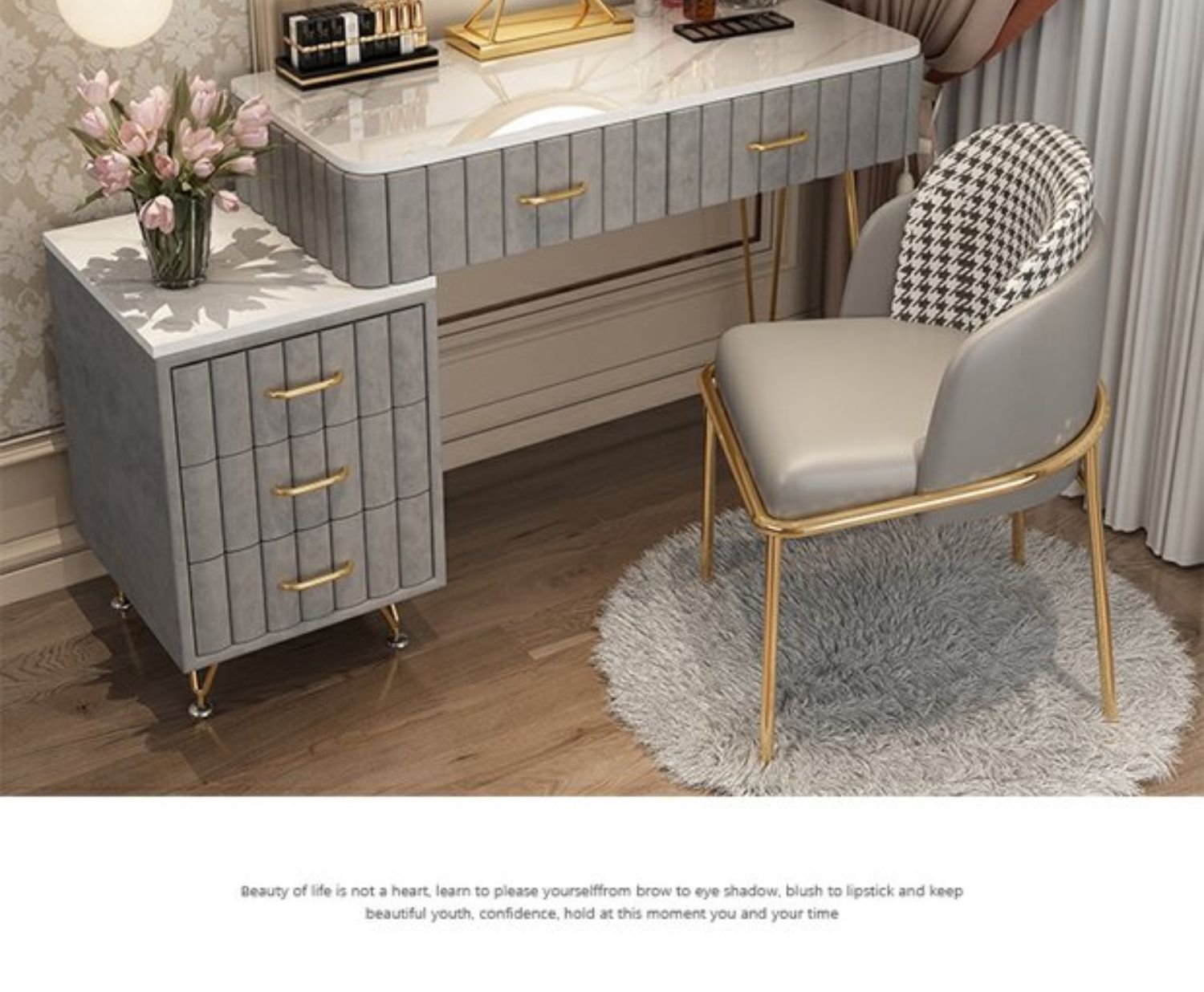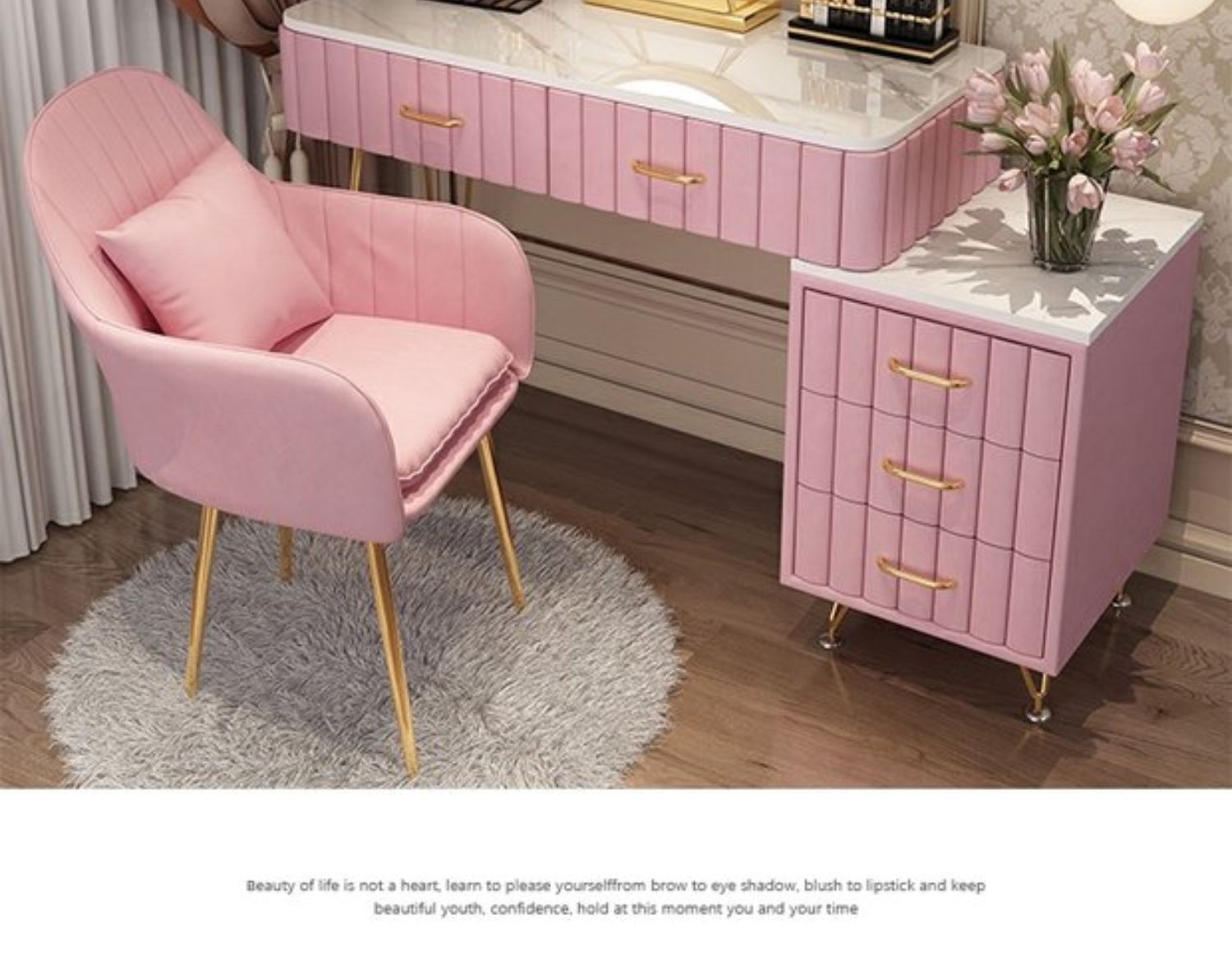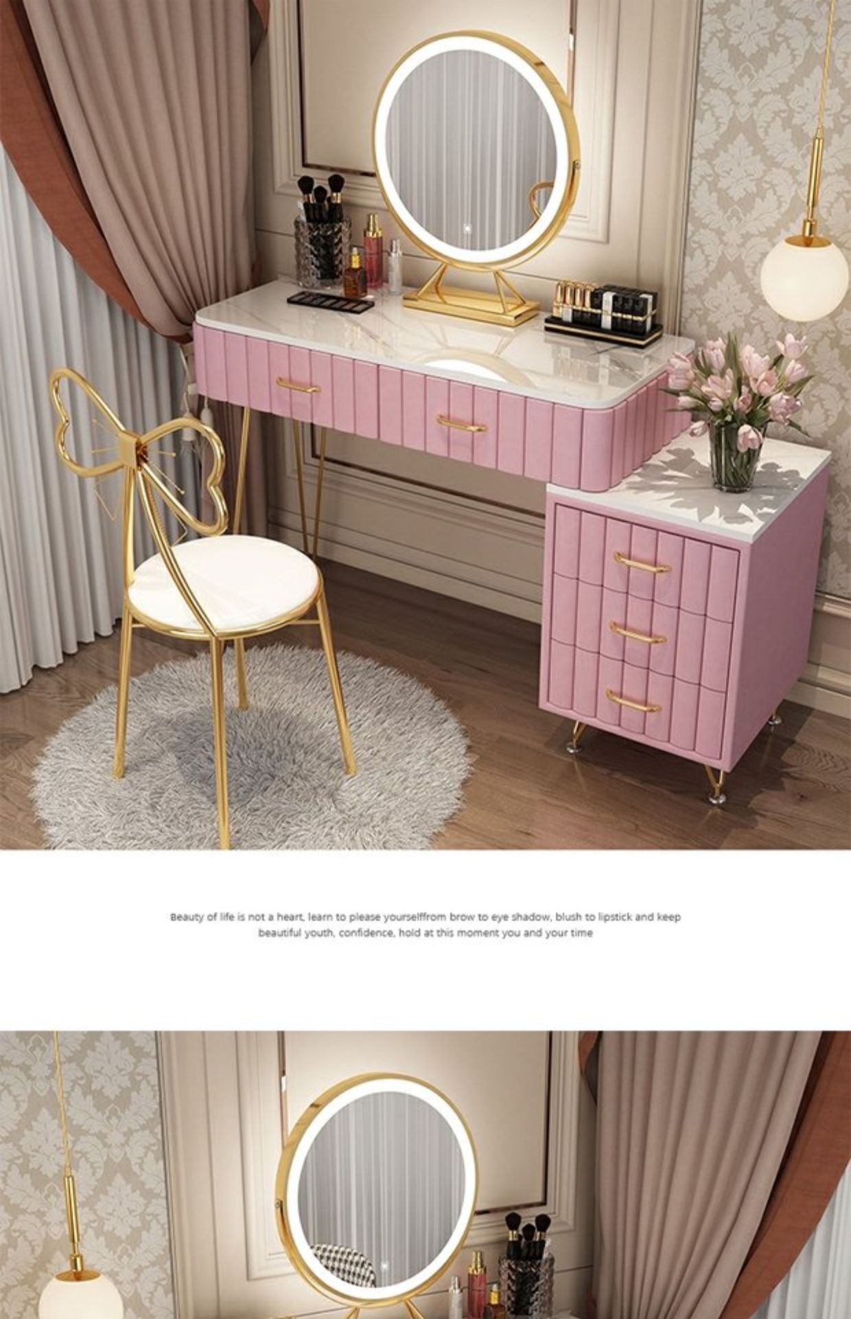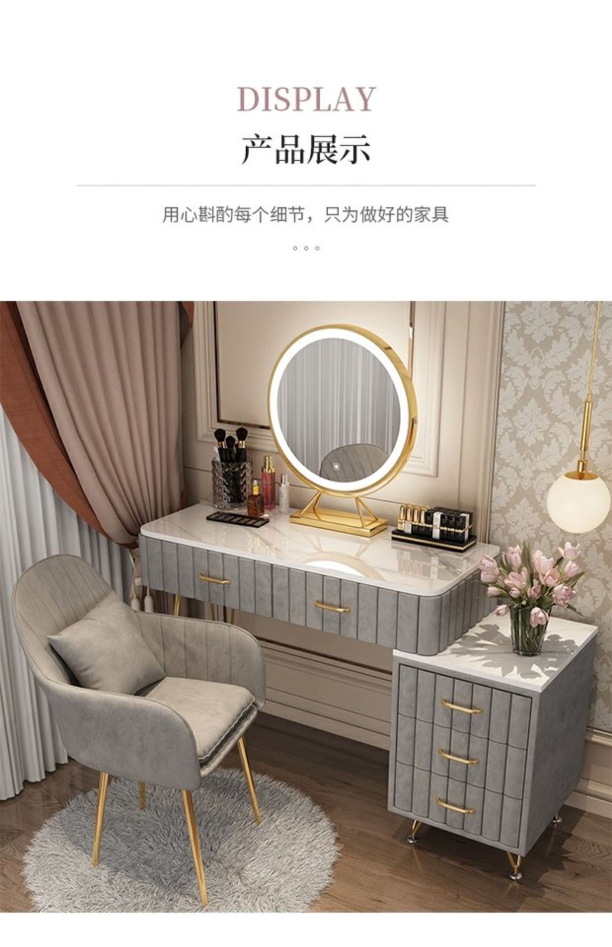Bàn trang điểm giả đá cẩm thạch phòng ngủ lưới ins đỏ phong cách tối giản hiện đại tủ lưu trữ tích hợp bàn trang điểm căn hộ nhỏ