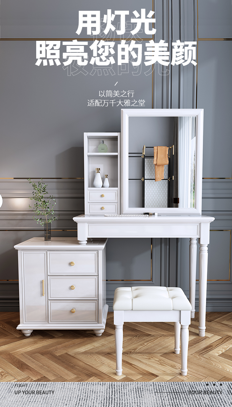 Bàn trang điểm gỗ nguyên khối kiểu mỹ tủ đựng đồ một phòng ngủ nhẹ bàn trang điểm cao cấp cao cấp bàn trang điểm nữ gương kéo đẩy