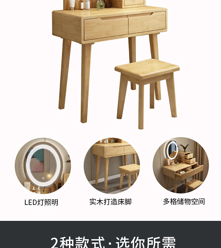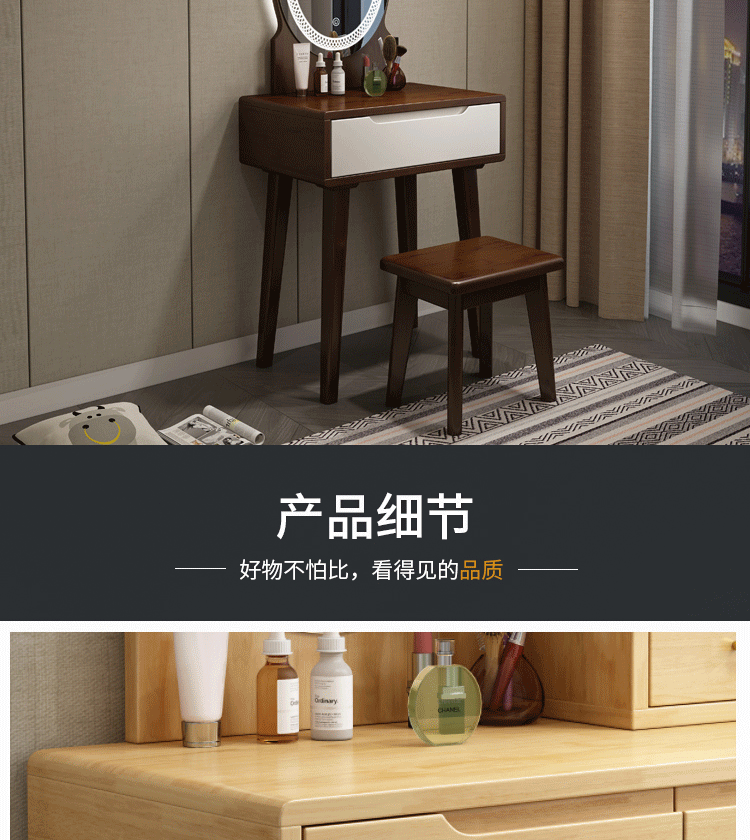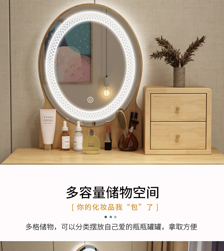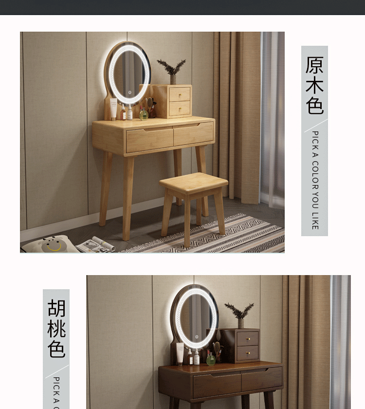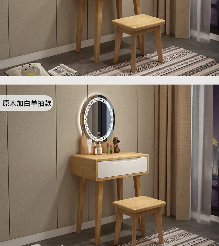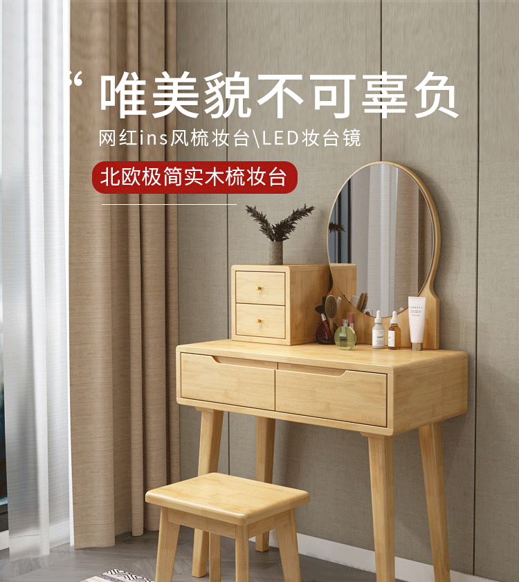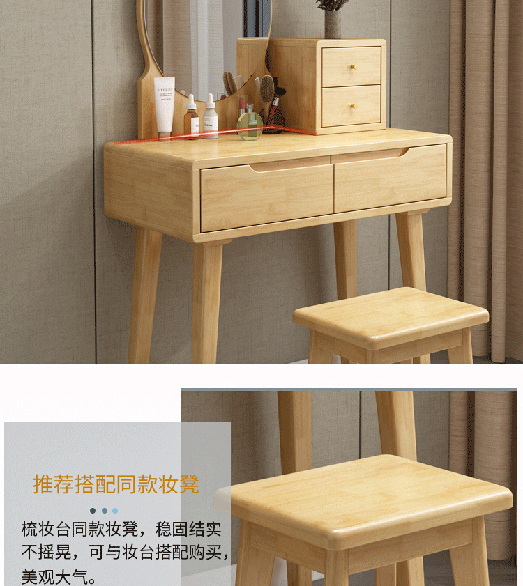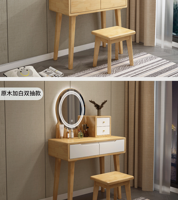Bàn trang điểm gỗ nguyên tấm Bắc Âu tủ lưu trữ phòng ngủ tích hợp hiện đại tối giản ánh sáng sang trọng lưới đỏ gió bàn trang điểm mini nhỏ
