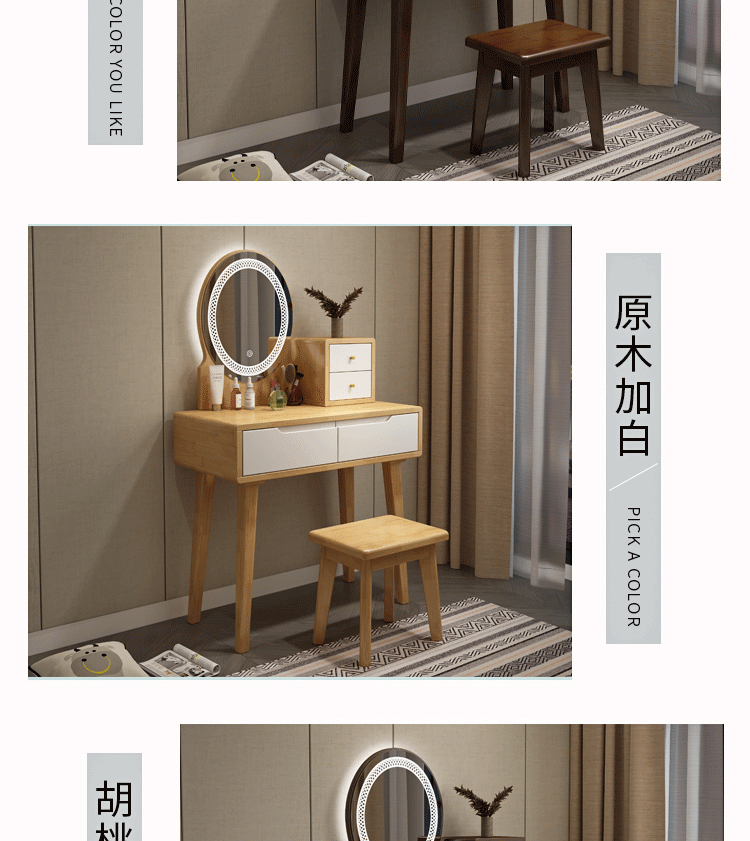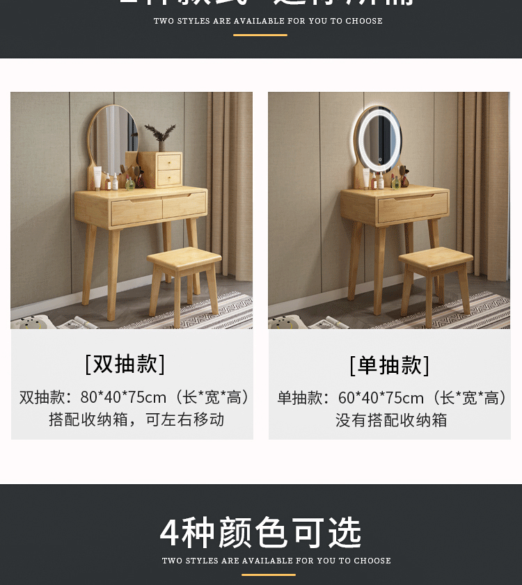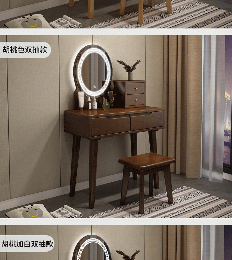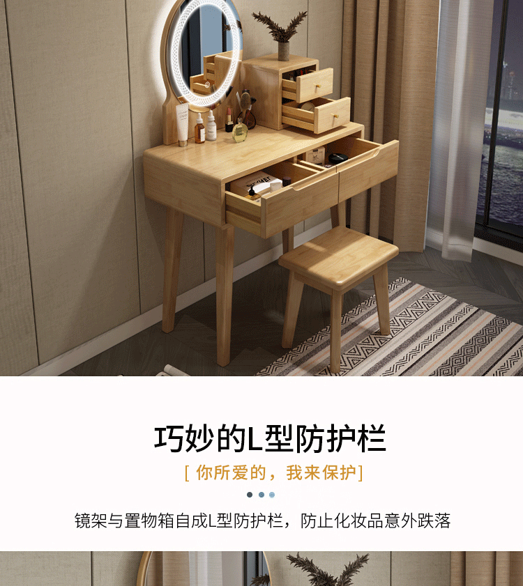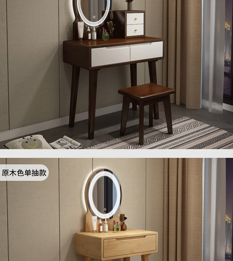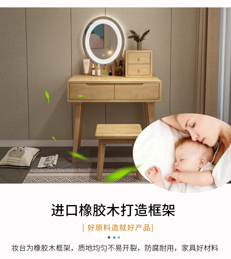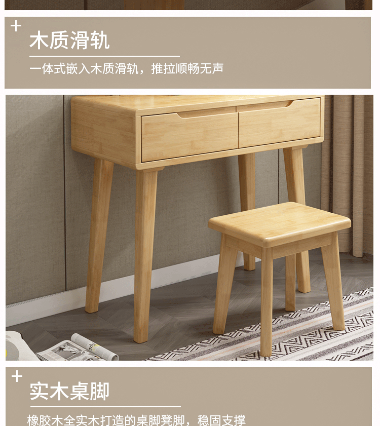 Bàn trang điểm gỗ nguyên tấm Bắc Âu tủ lưu trữ phòng ngủ tích hợp hiện đại tối giản ánh sáng sang trọng lưới đỏ gió bàn trang điểm mini nhỏ