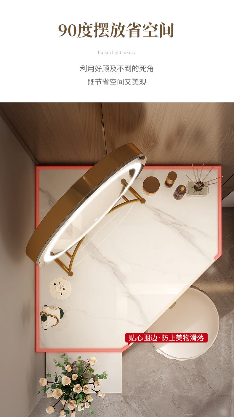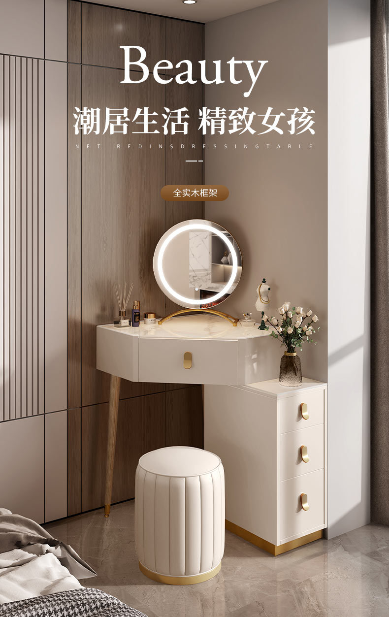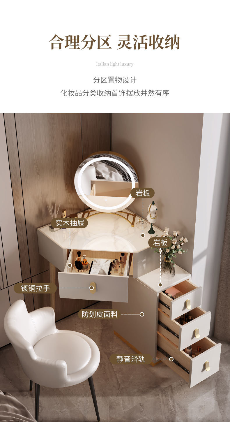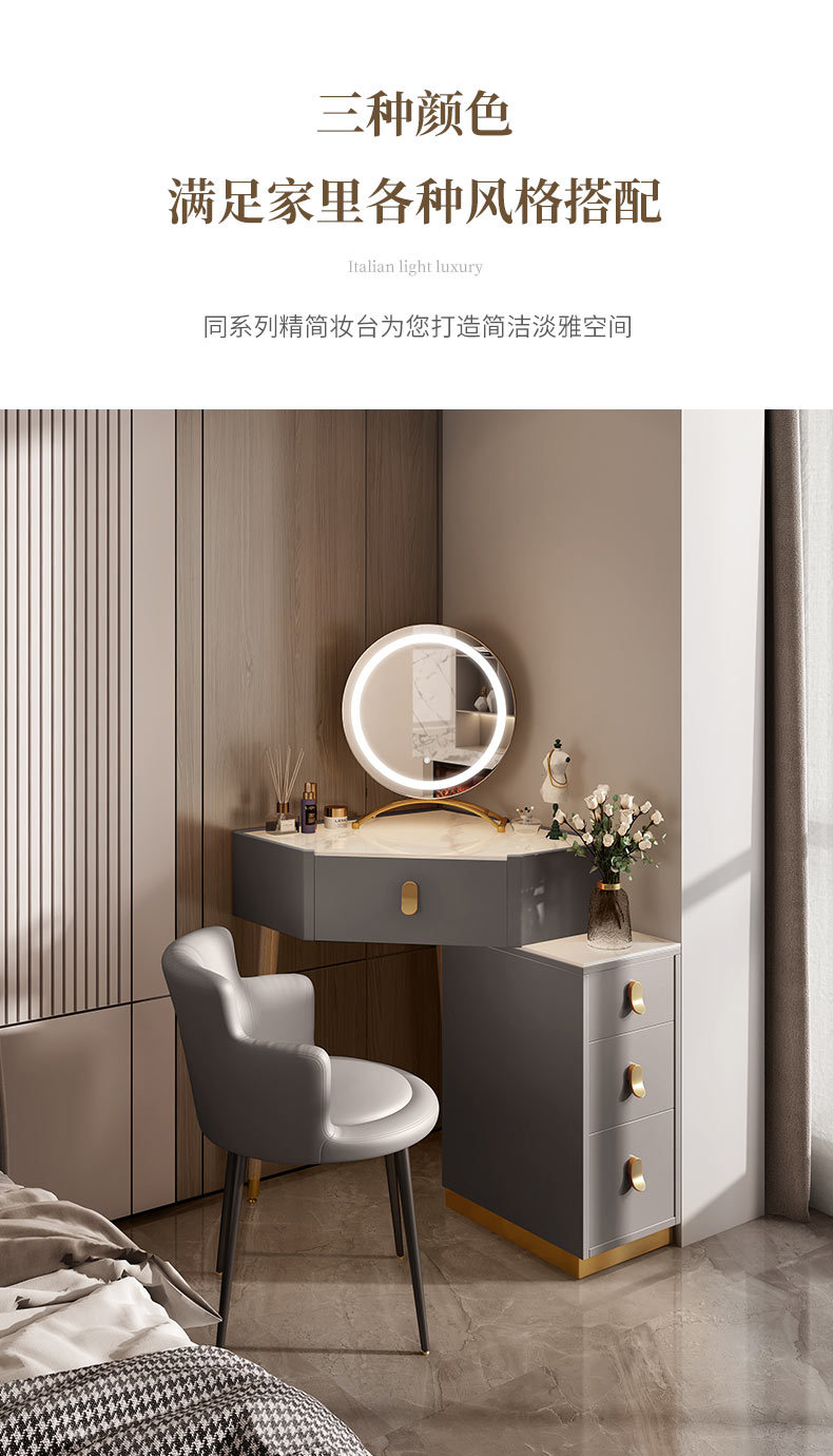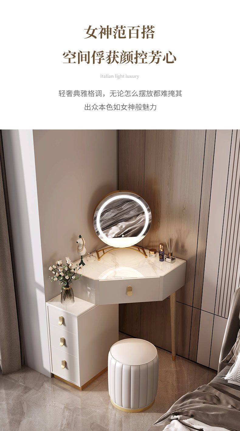 Bàn trang điểm góc tủ ánh sáng sang trọng phong cách ins gỗ nguyên khối đá phiến phòng ngủ tối giản hiện đại bàn trang điểm tam giác nhỏ bàn