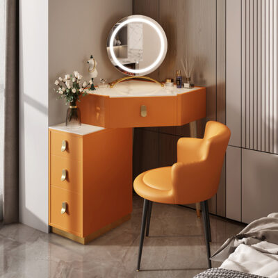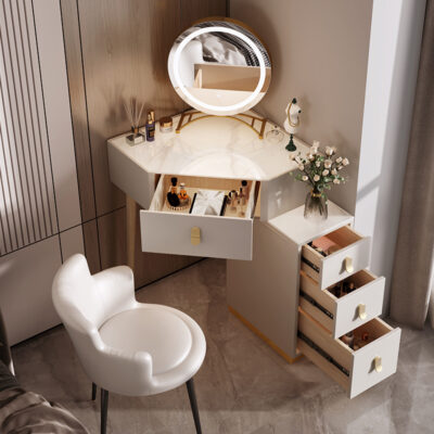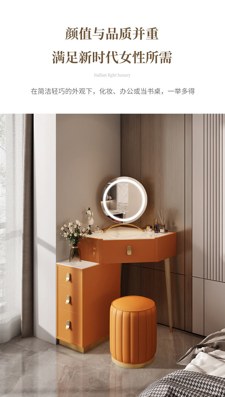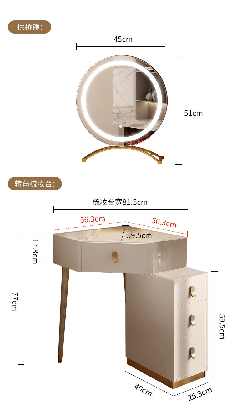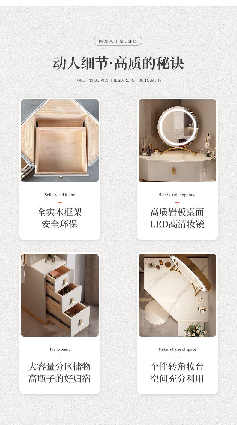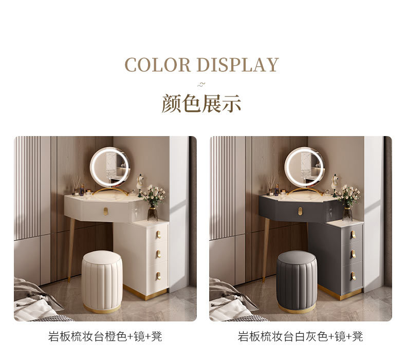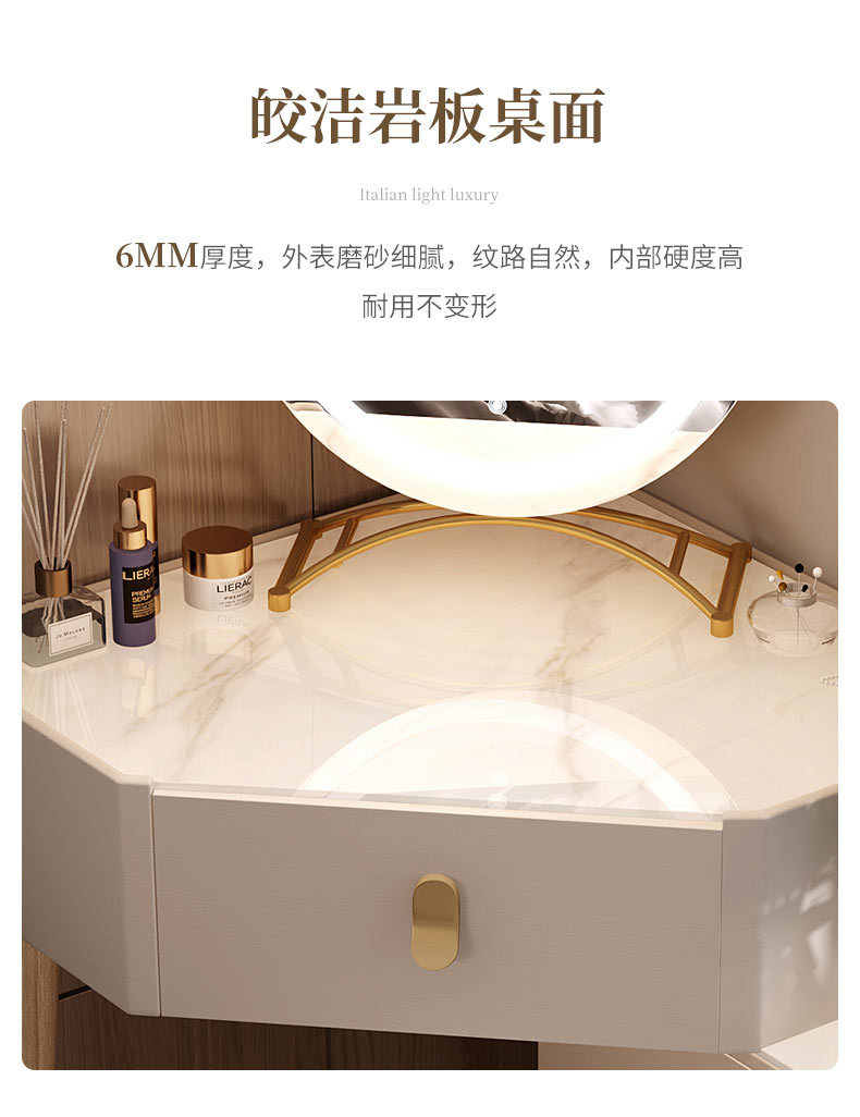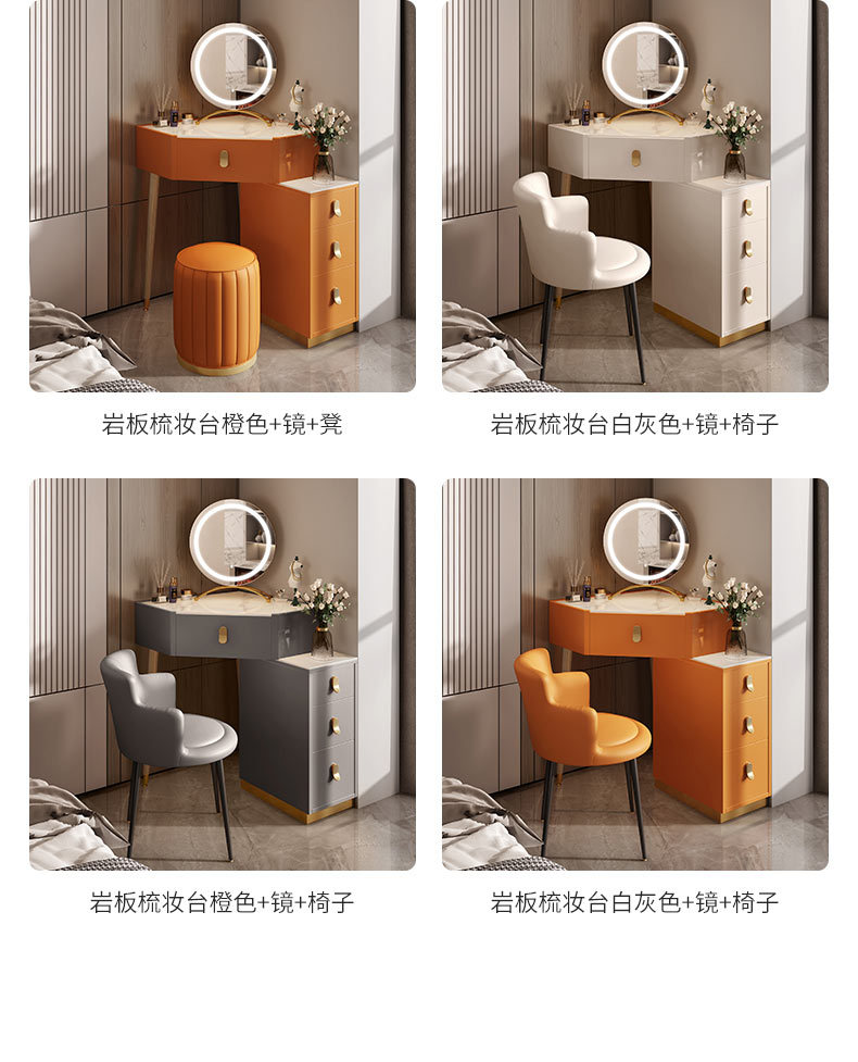 Bàn trang điểm góc tủ ánh sáng sang trọng phong cách ins gỗ nguyên khối đá phiến phòng ngủ tối giản hiện đại bàn trang điểm tam giác nhỏ bàn