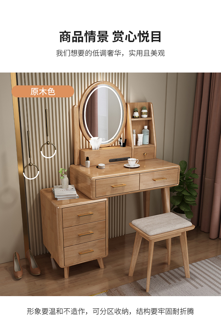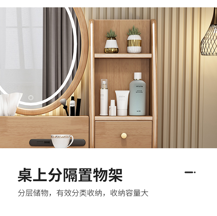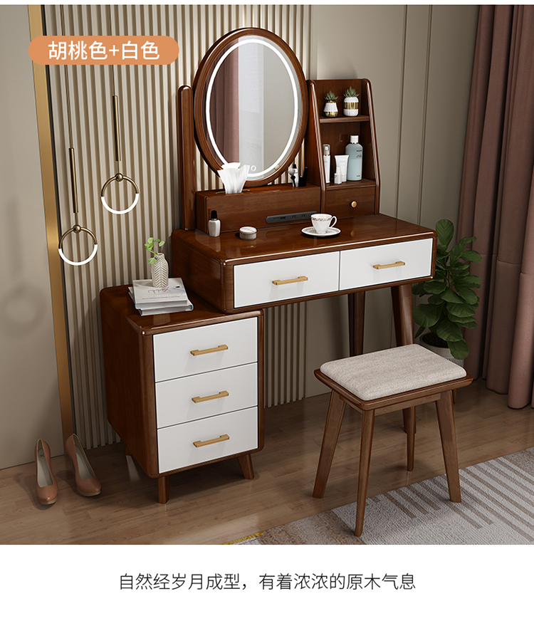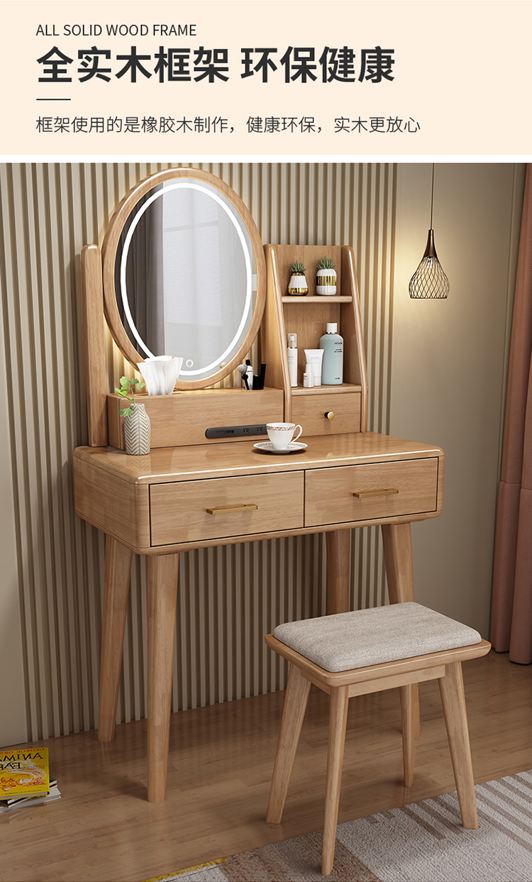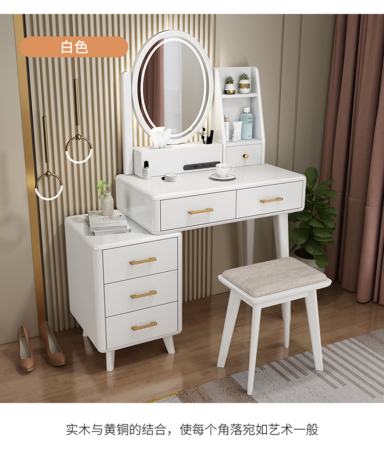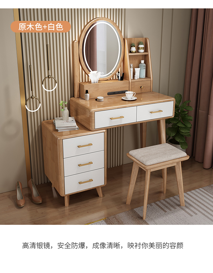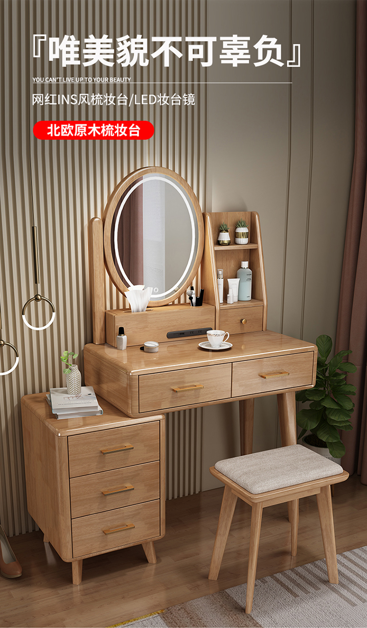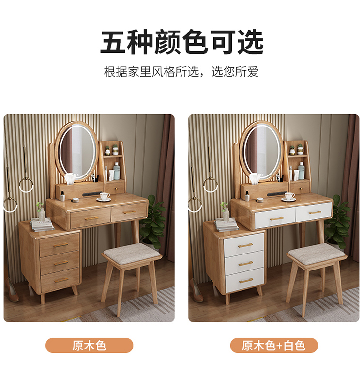 Bàn trang điểm lưu trữ bàn đầu giường một phòng ngủ bàn trang điểm hiện đại tối giản màu đỏ ròng Bàn trang điểm bằng gỗ nguyên khối kiểu Bắc Âu có đèn