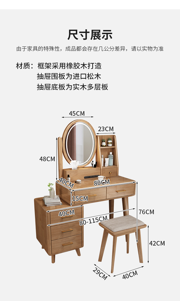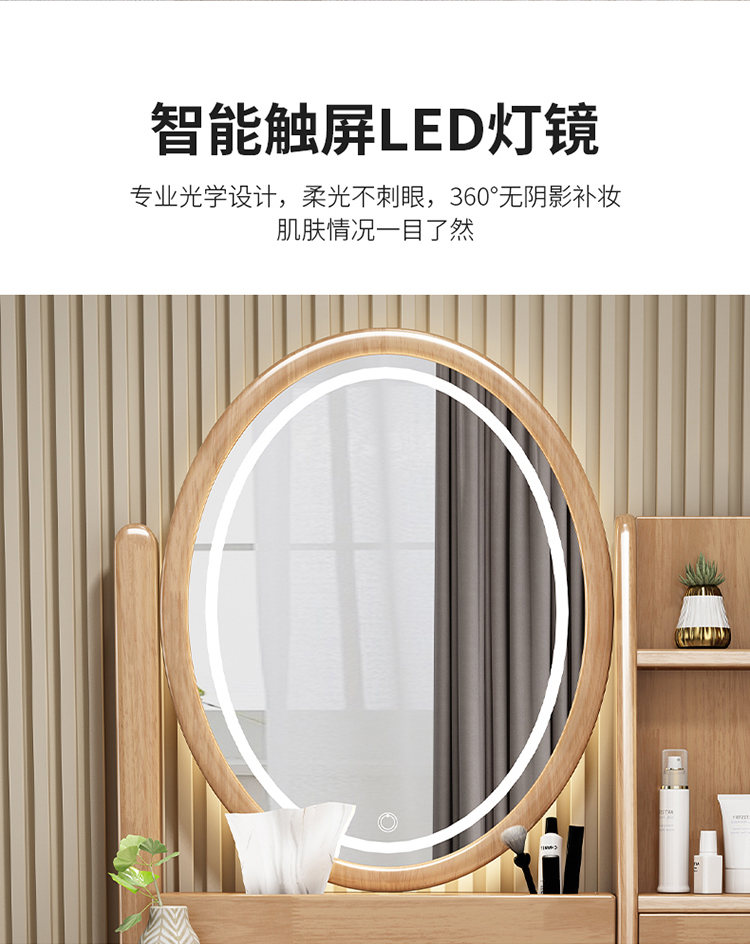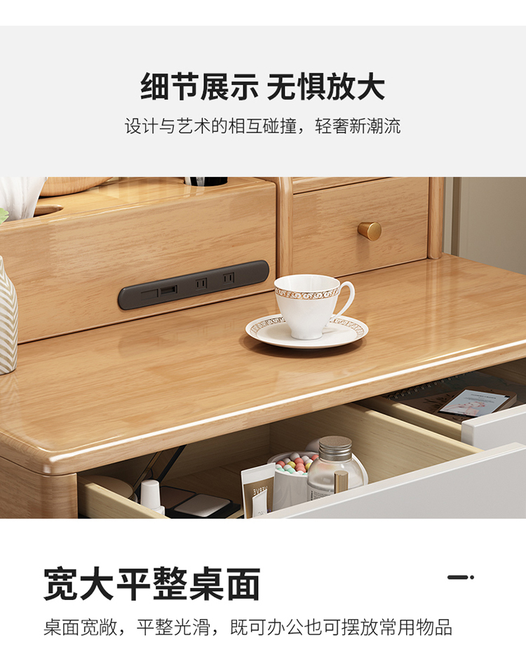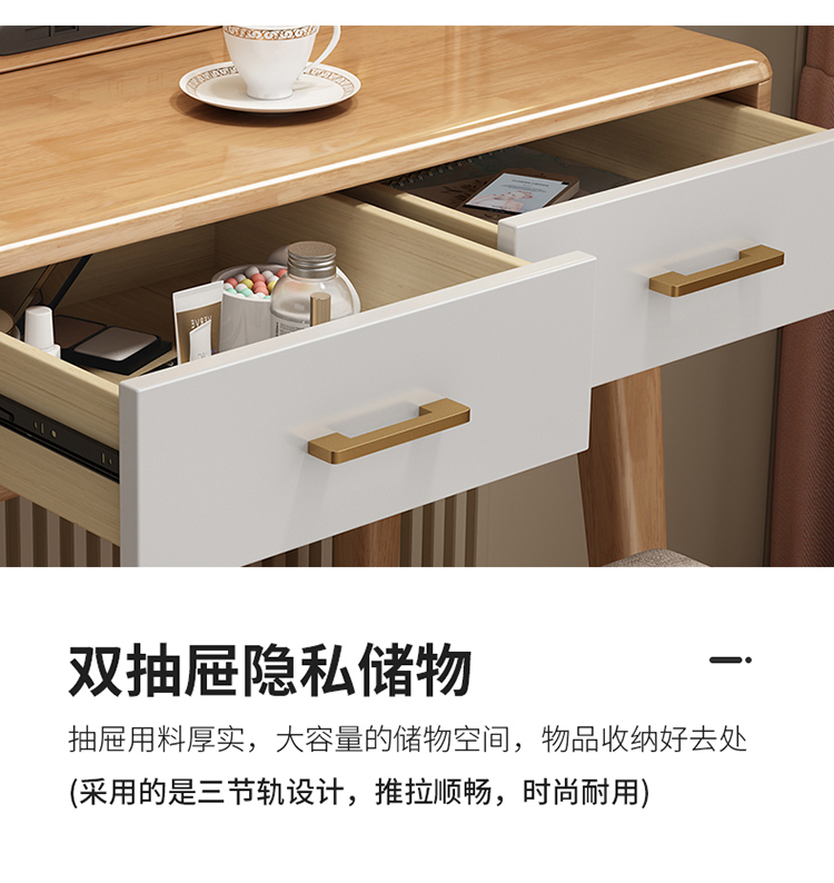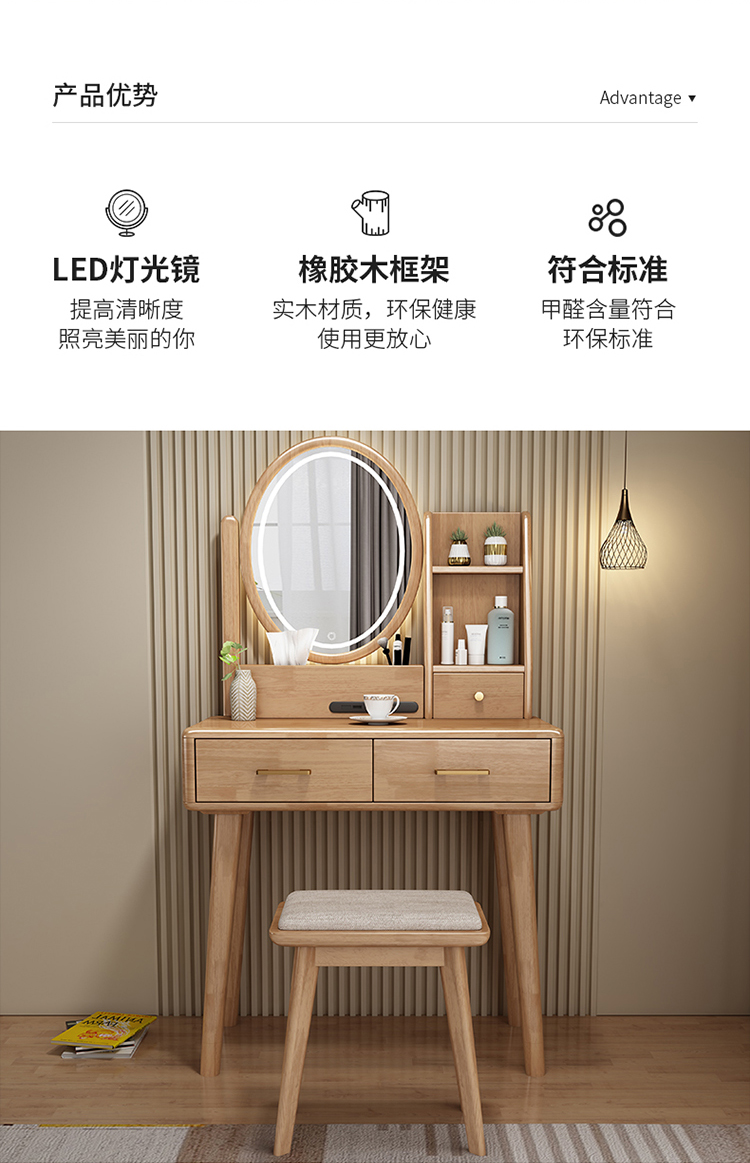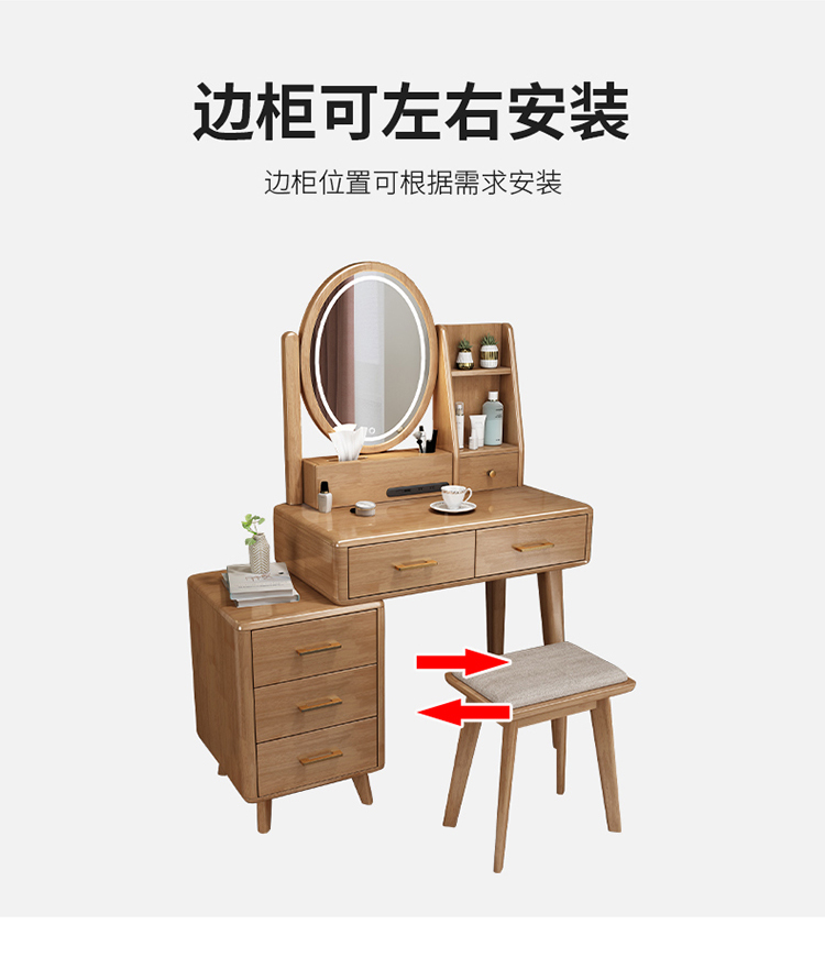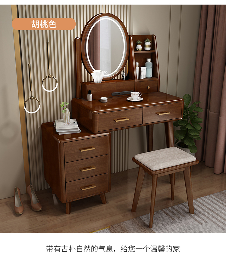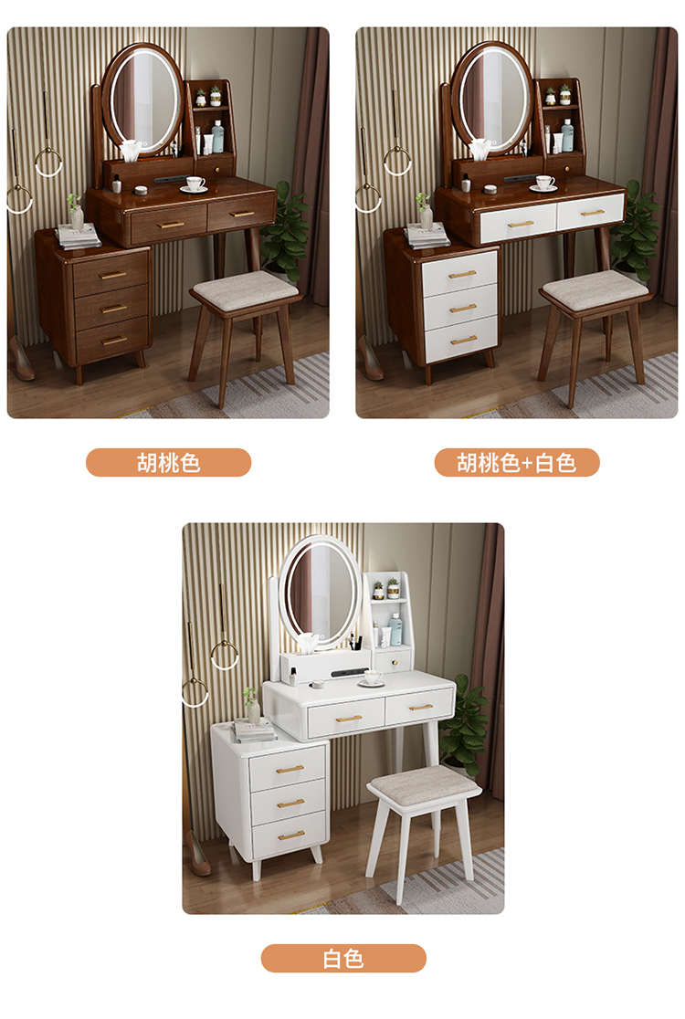 Bàn trang điểm lưu trữ bàn đầu giường một phòng ngủ bàn trang điểm hiện đại tối giản màu đỏ ròng Bàn trang điểm bằng gỗ nguyên khối kiểu Bắc Âu có đèn