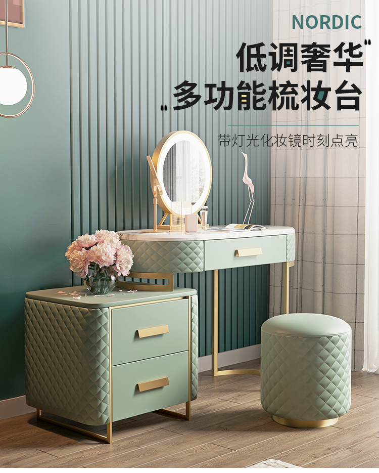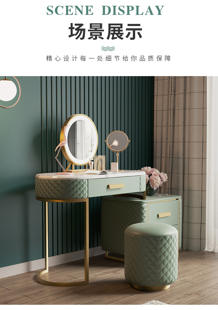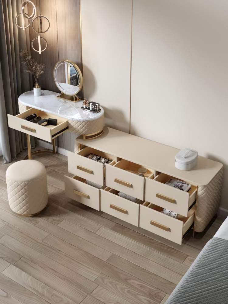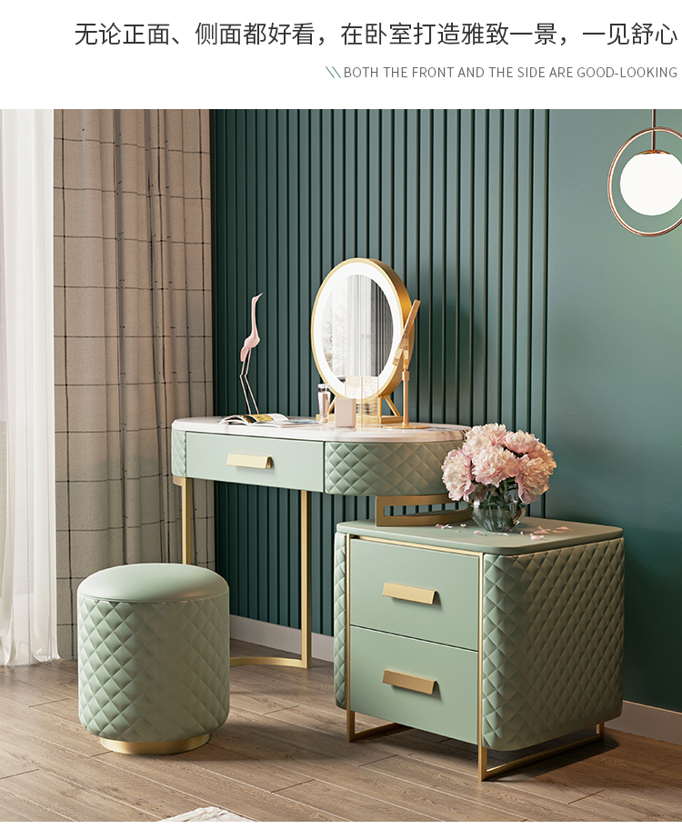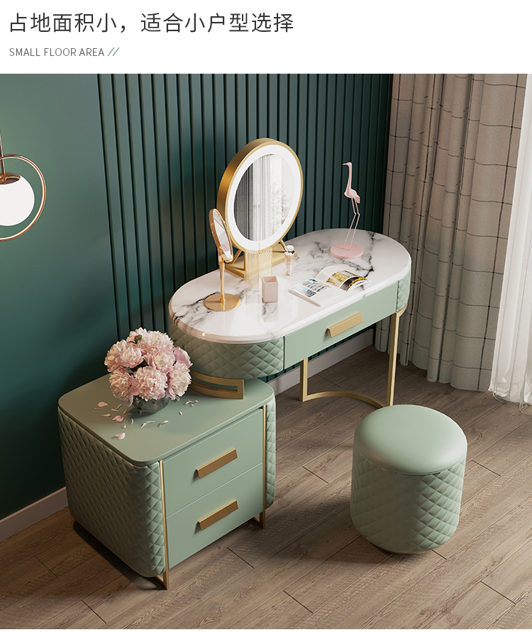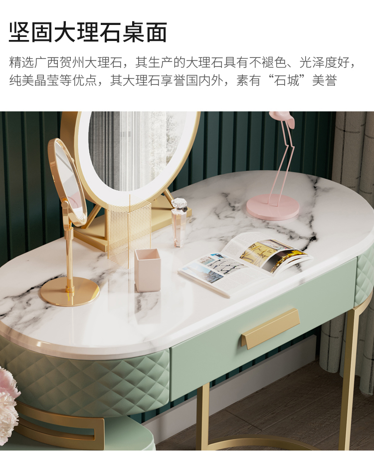 Bàn trang điểm mặt bàn bằng đá cẩm thạch, màu sắc nhã nhặn, tinh tế.