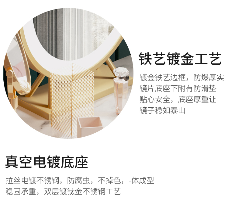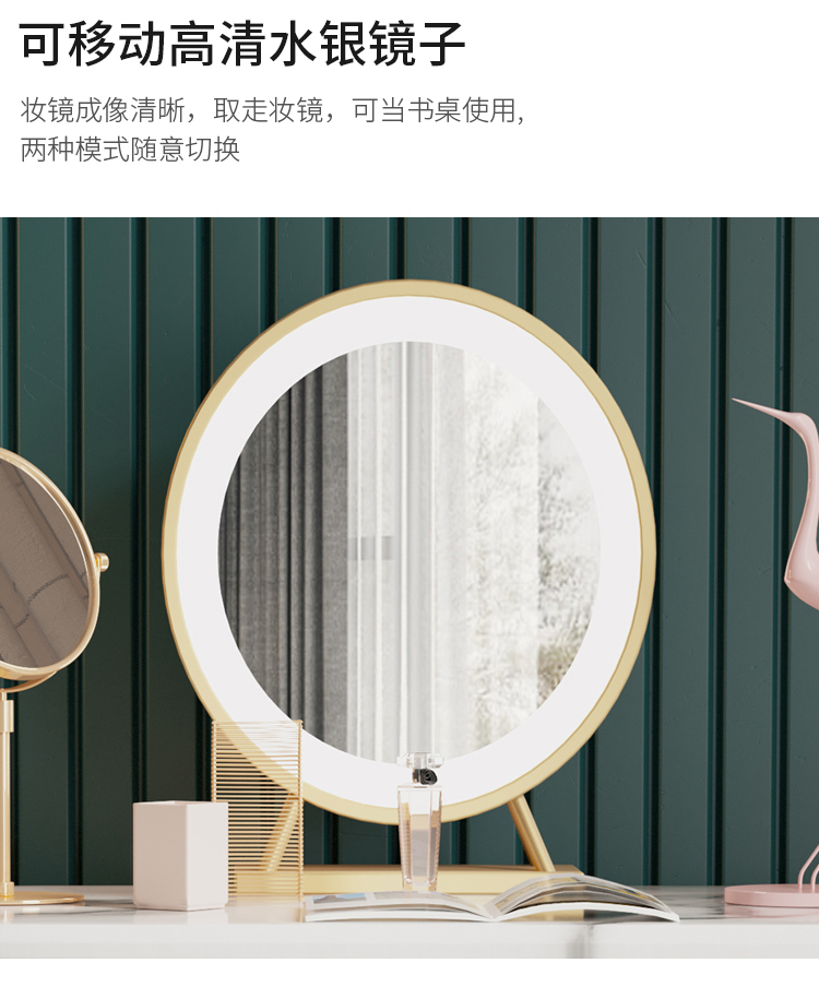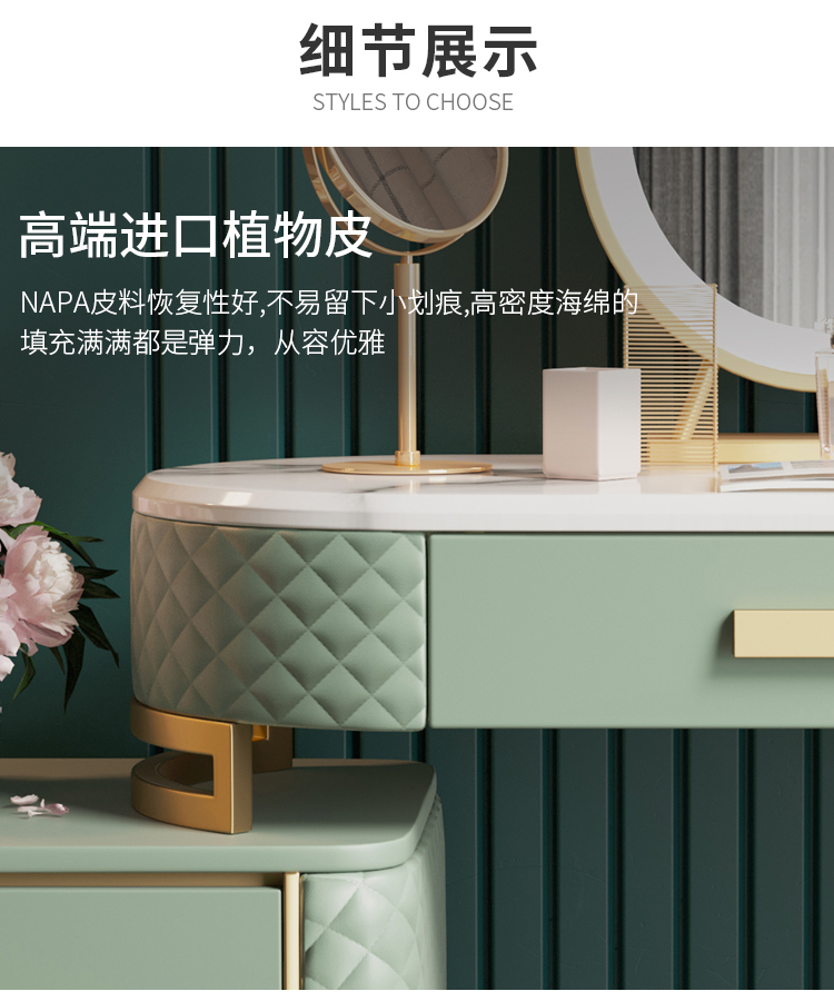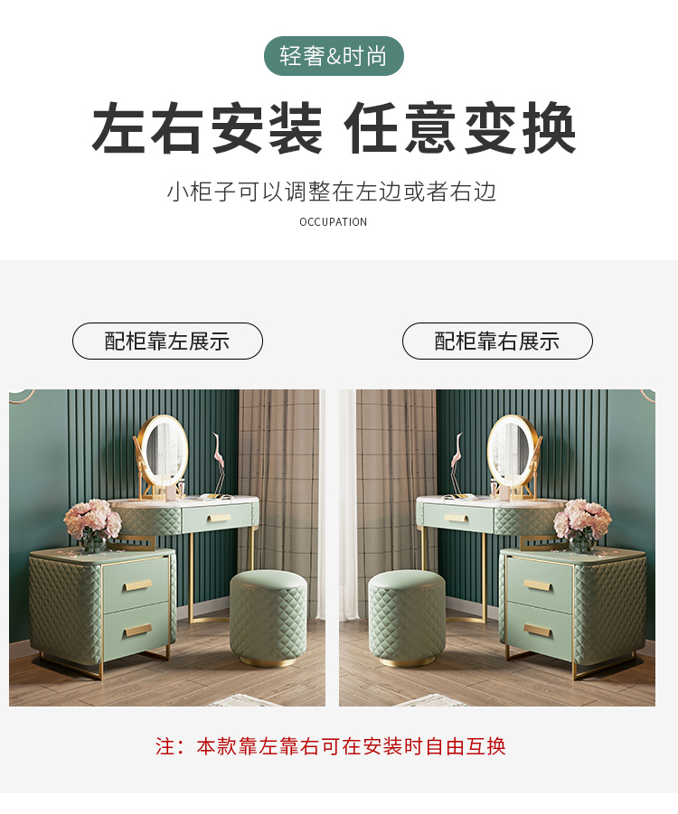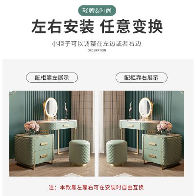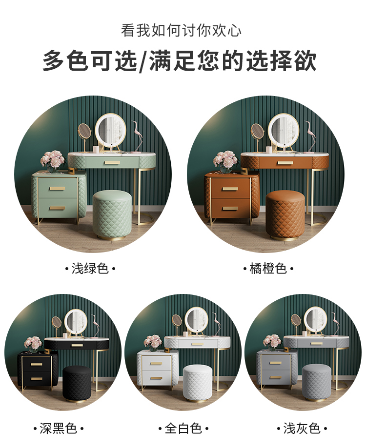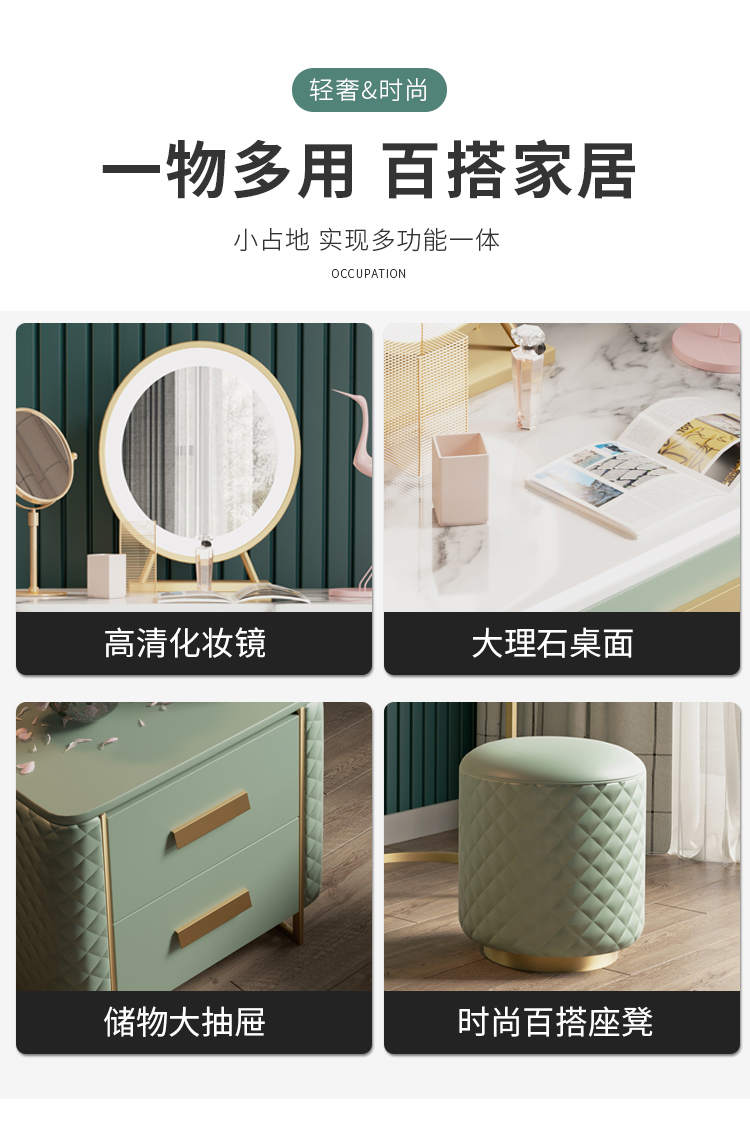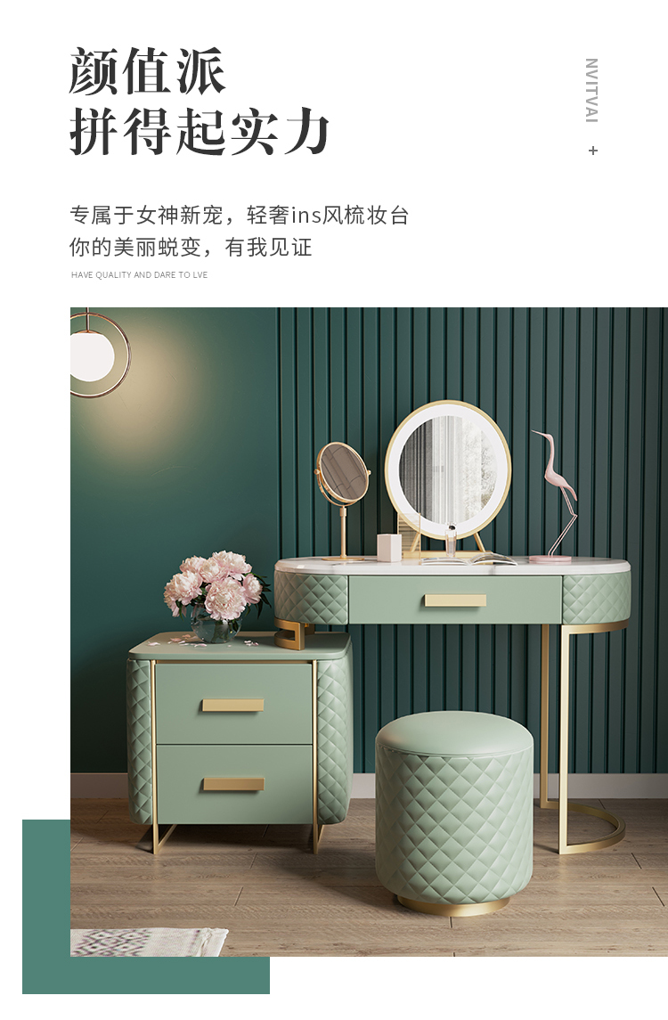 Bàn trang điểm mặt bàn bằng đá cẩm thạch, màu sắc nhã nhặn, tinh tế.