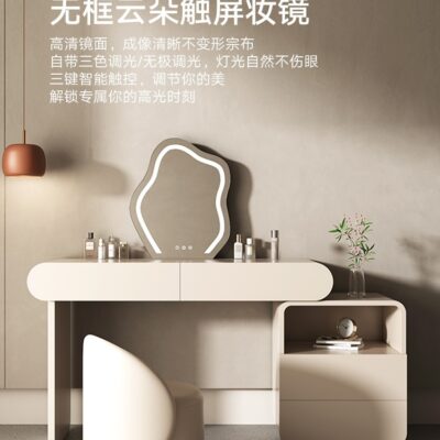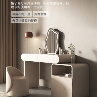 Bàn trang điểm màu đỏ kem kiểu dáng sang trọng nhẹ nhàng phòng ngủ đơn giản và có thể thu vào thế hệ tủ đựng đồ cao cấp tích hợp bàn trang điểm