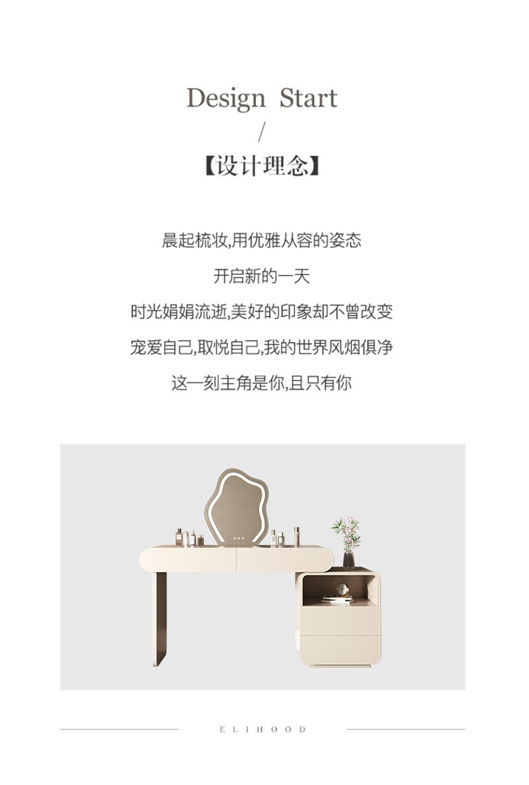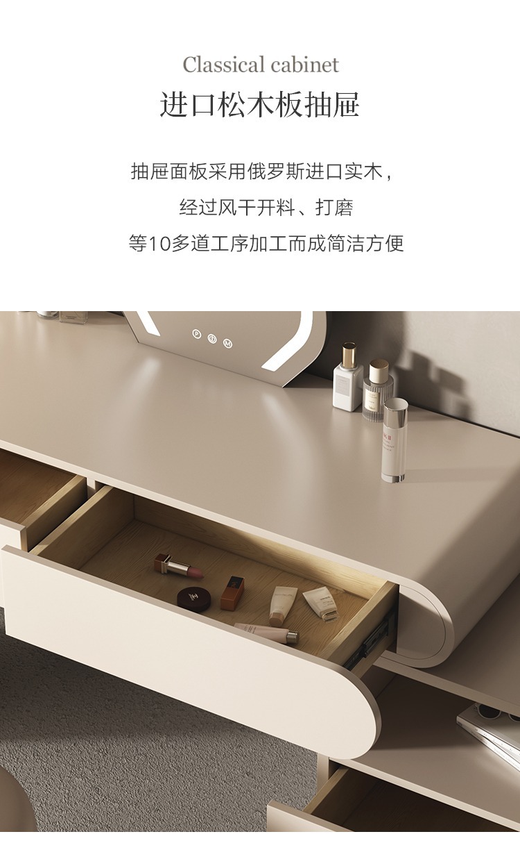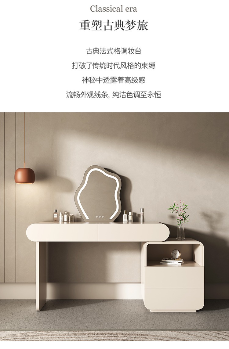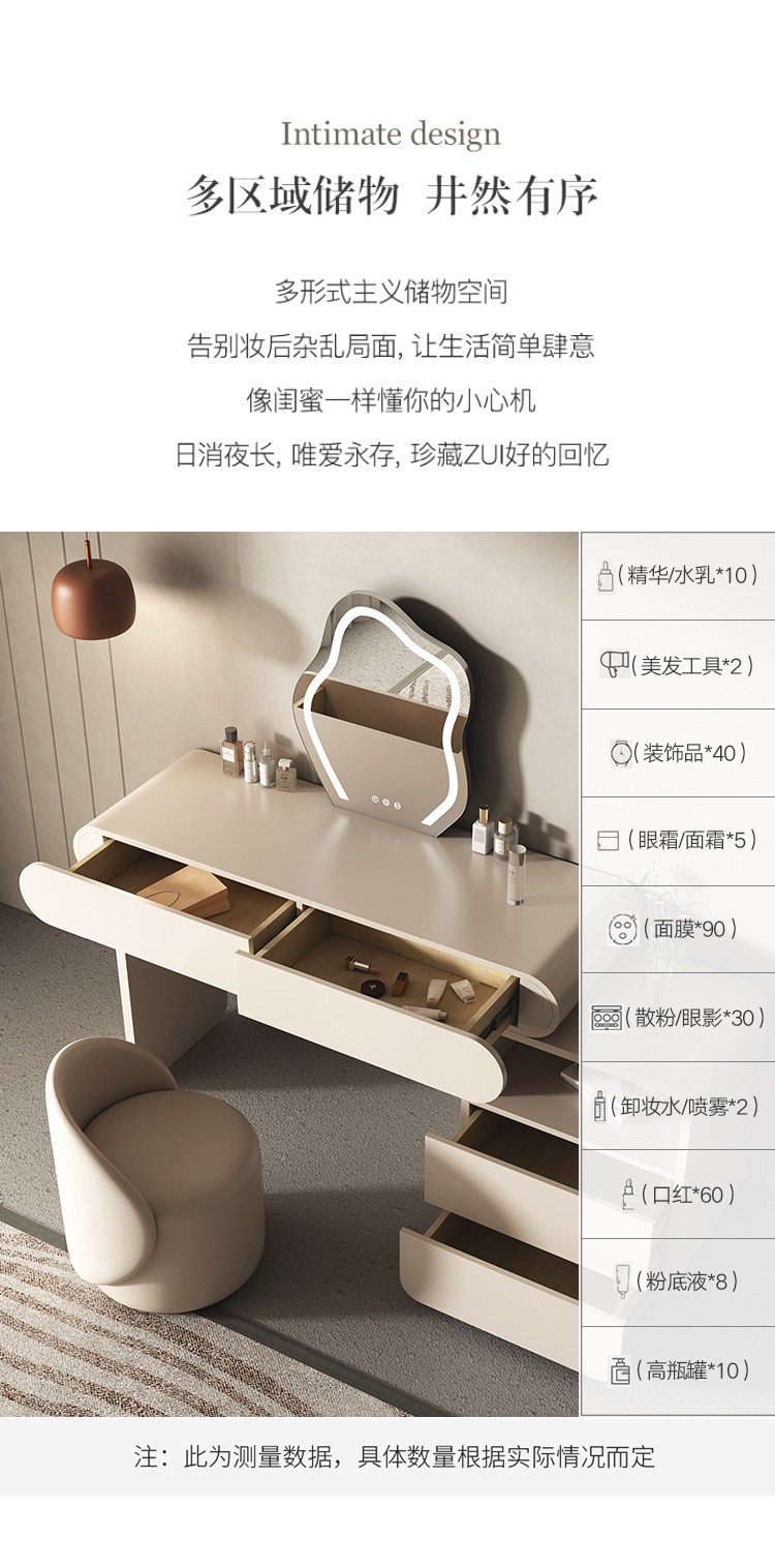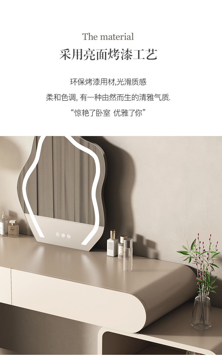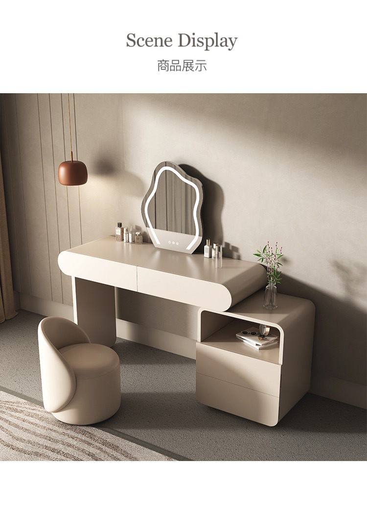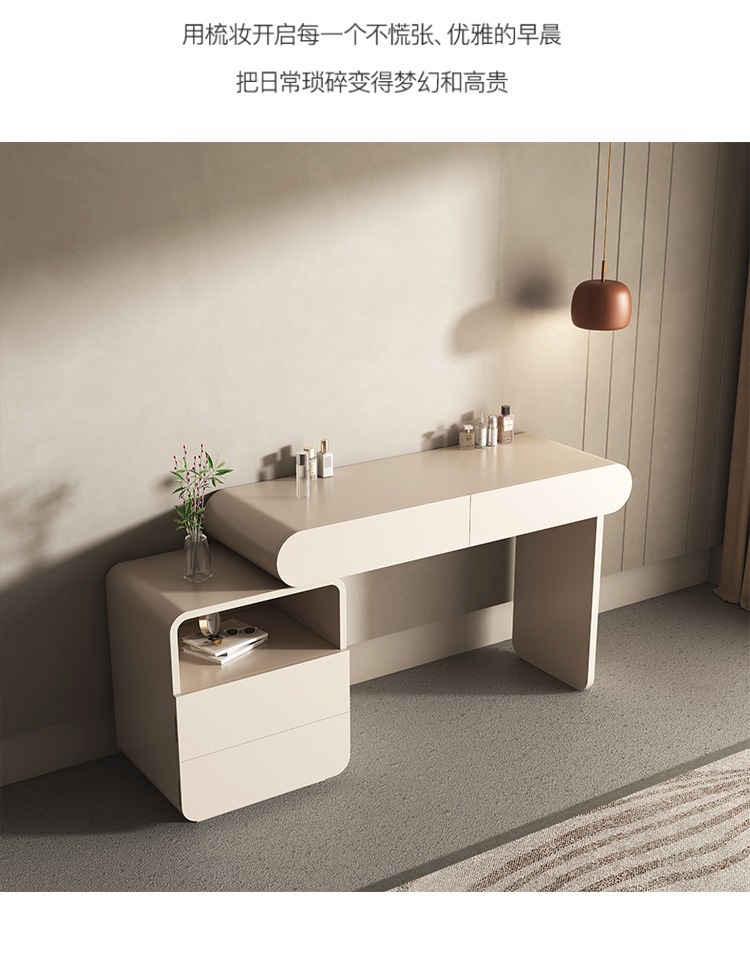Bàn trang điểm màu đỏ kem kiểu dáng sang trọng nhẹ nhàng phòng ngủ đơn giản và có thể thu vào thế hệ tủ đựng đồ cao cấp tích hợp bàn trang điểm