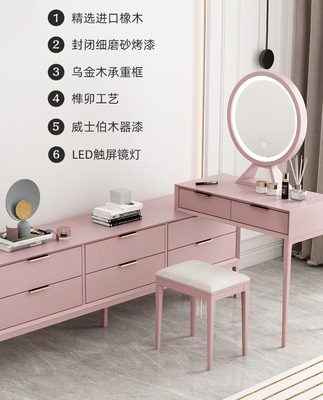 Bàn trang điểm màu hồng kèm tủ.