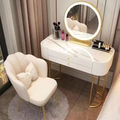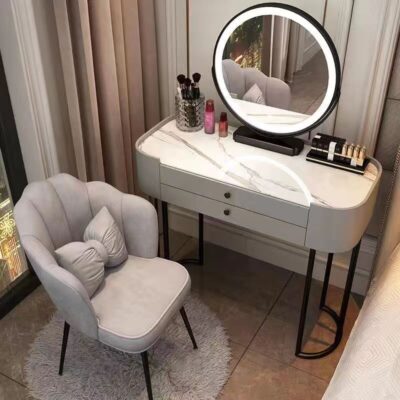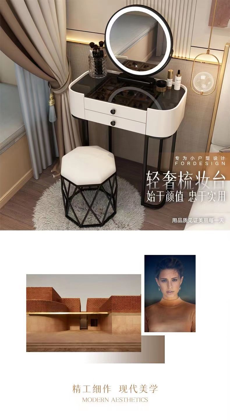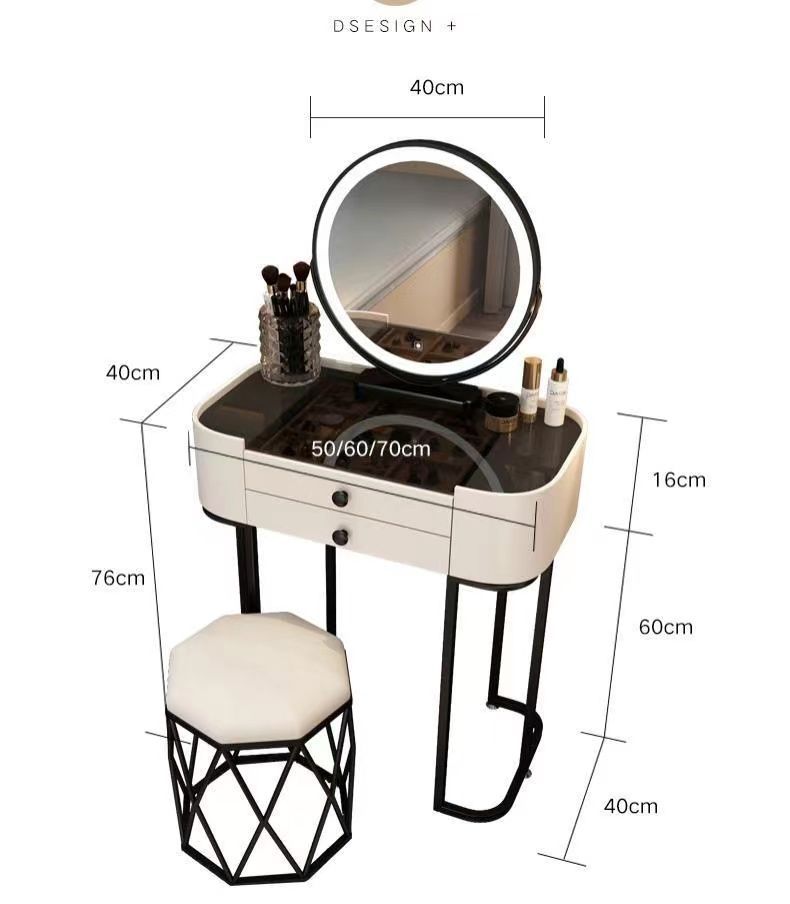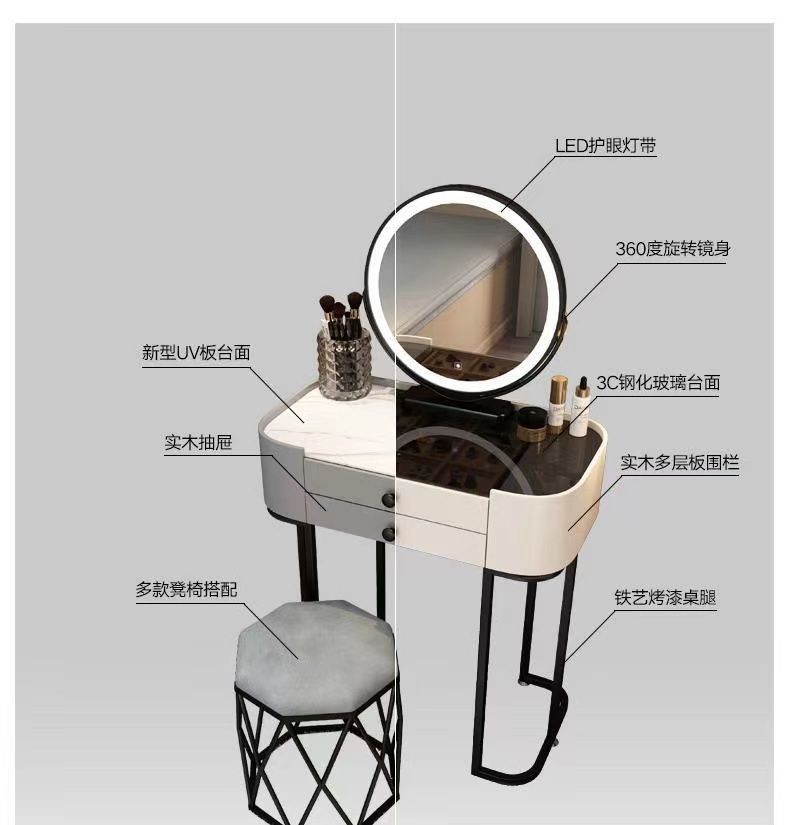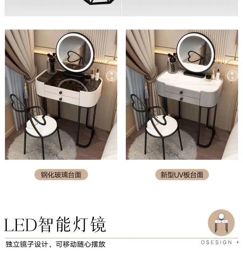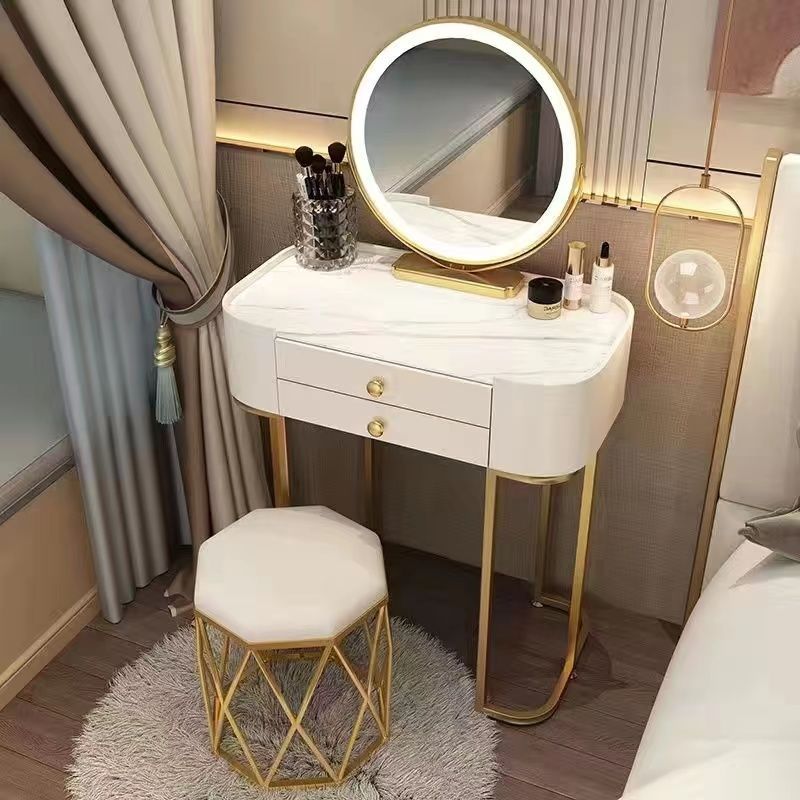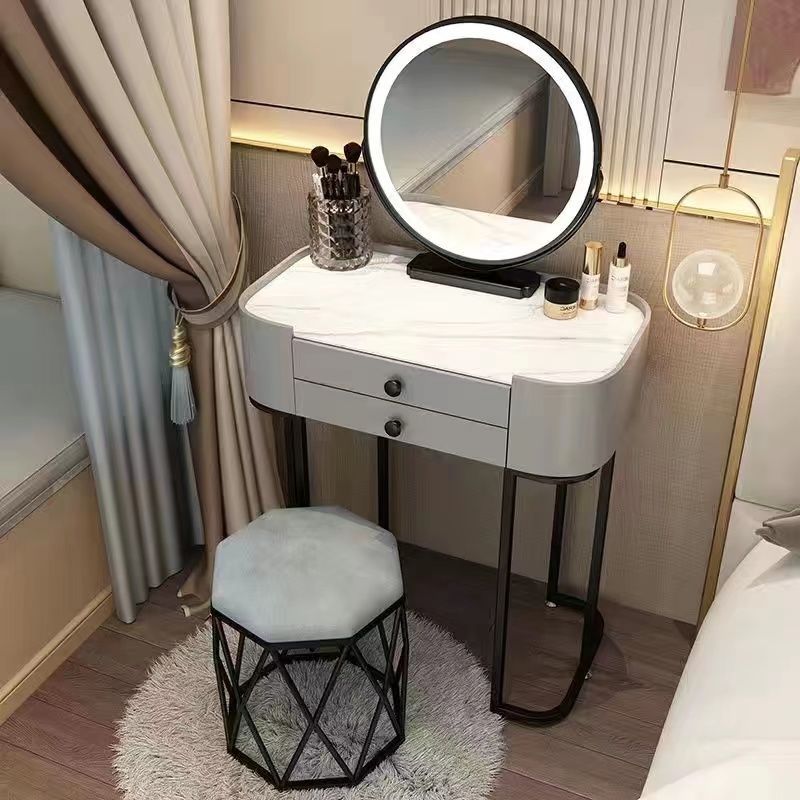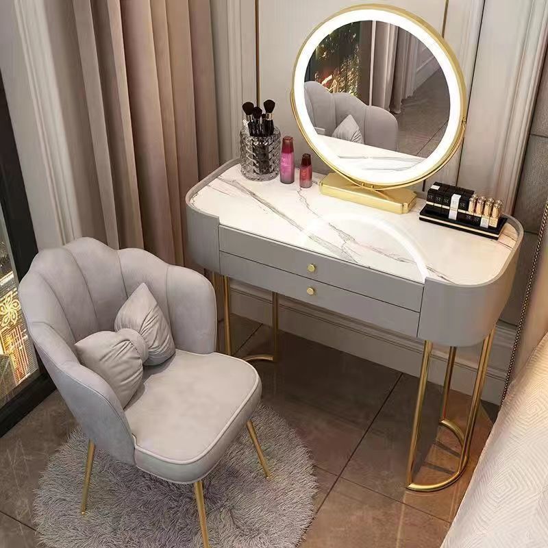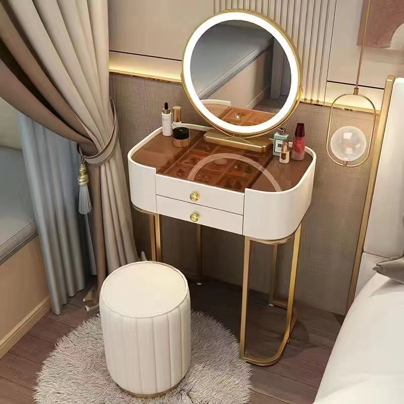 Bàn trang điểm phòng ngủ chung cư nhỏ phòng ngủ master bàn trang điểm lưới đỏ phong cách ins mặt bàn kính bàn trang điểm hiện đại đơn giản