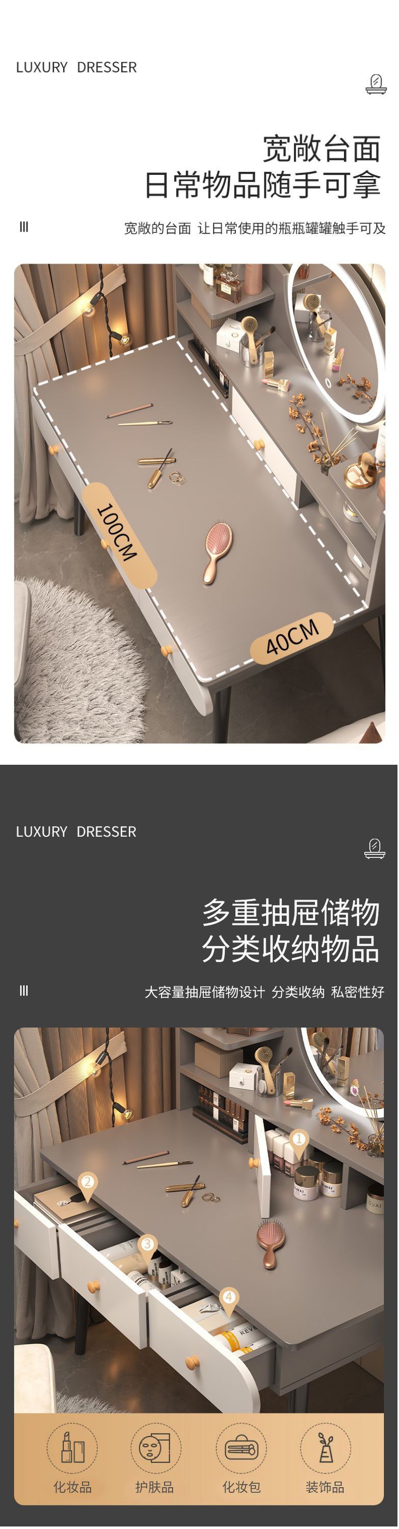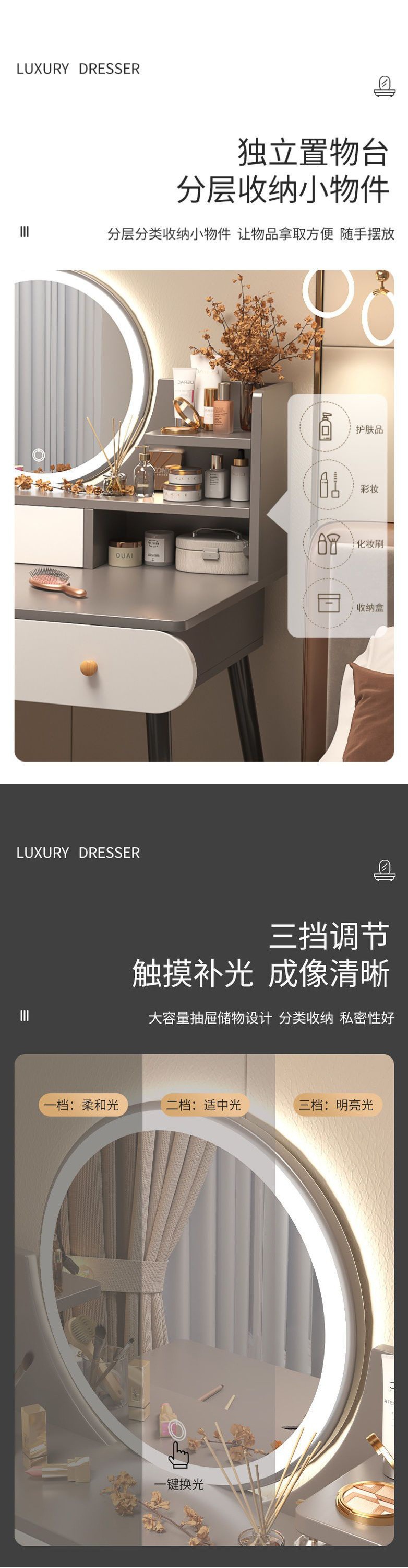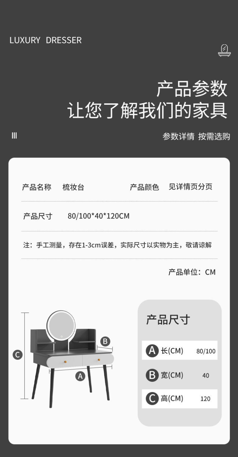Bàn trang điểm phòng ngủ tối giản hiện đại bàn trang điểm nhỏ bàn trang điểm căn hộ nhỏ ánh sáng bàn trang điểm sang trọng bàn gương trang điểm
