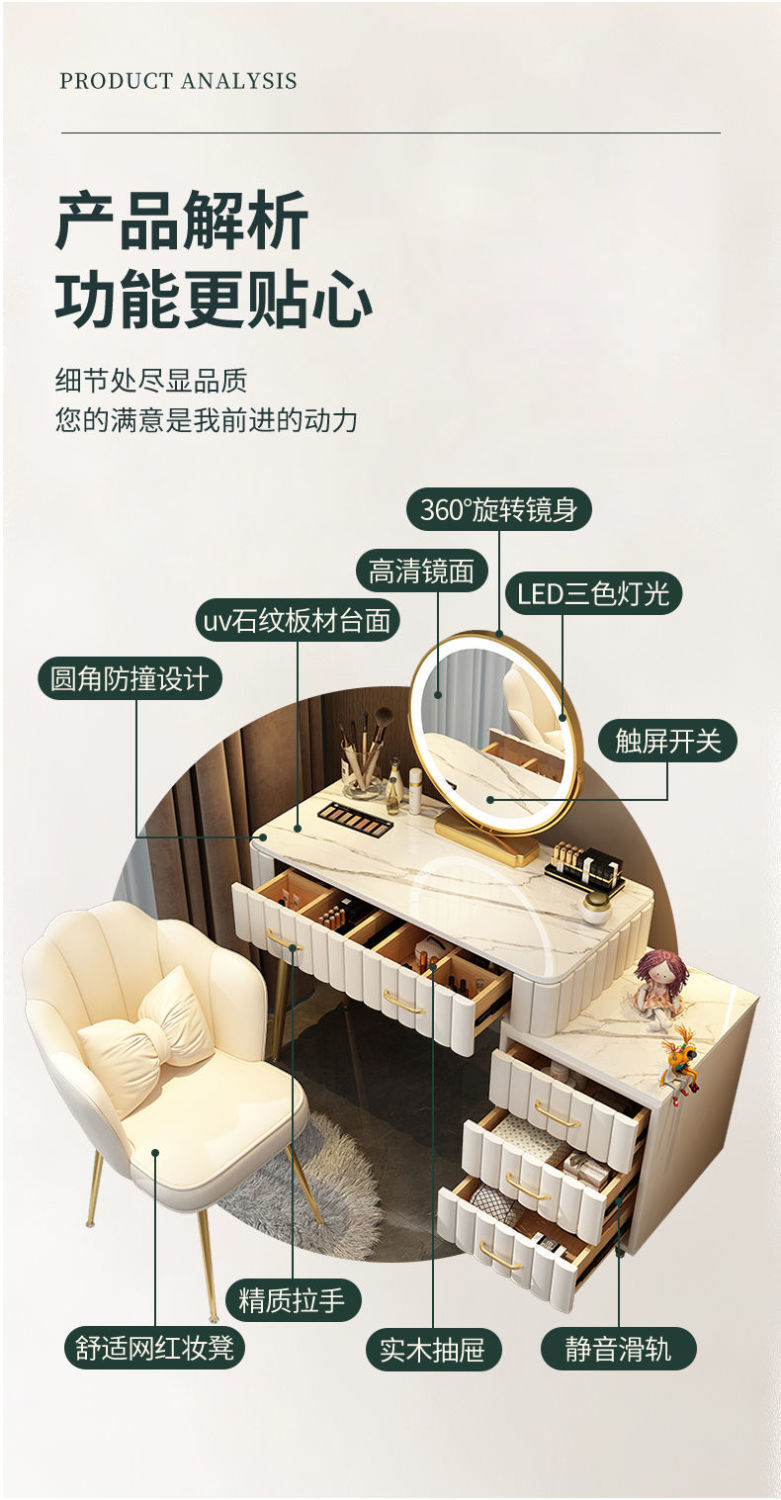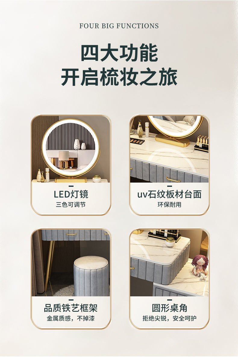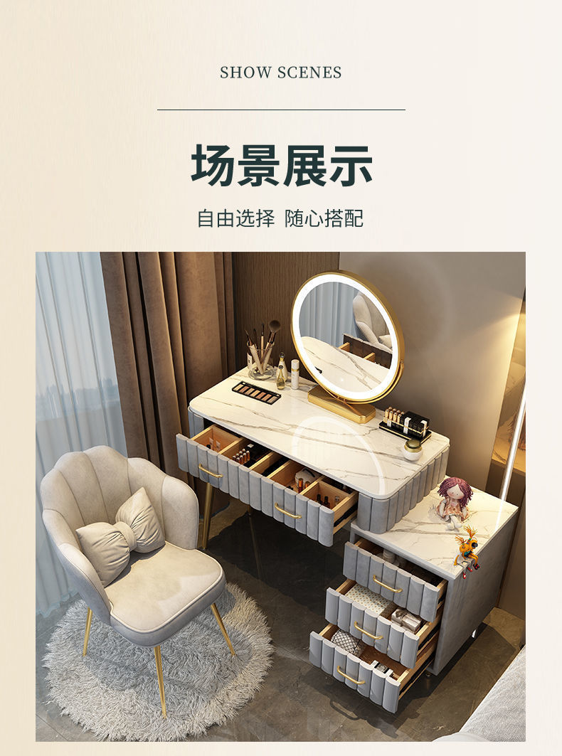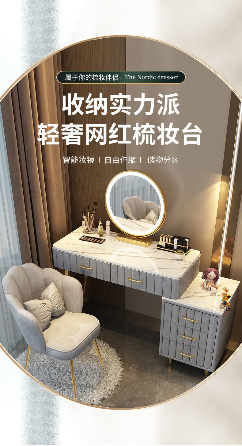 Bàn trang điểm phòng ngủ tối giản hiện đại căn hộ nhỏ phòng ngủ master Bắc Âu mới bàn tủ tích hợp bàn gương trang điểm