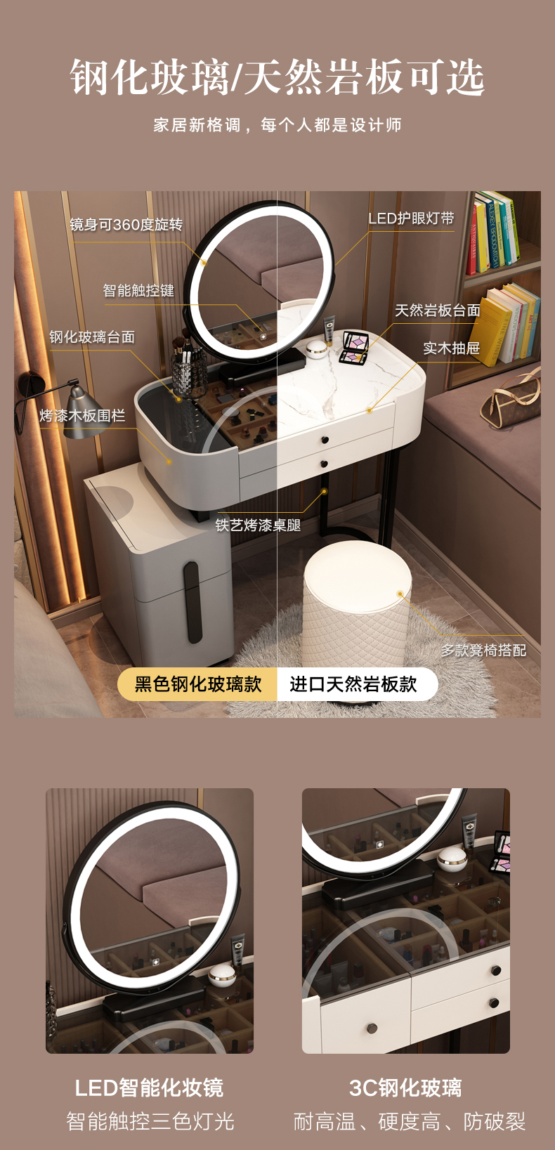 Bàn trang điểm sang trọng nhẹ phòng ngủ nhỏ hiện đại tối giản 2021 phong cách mới bàn trang điểm tủ gương tích hợp cao cấp