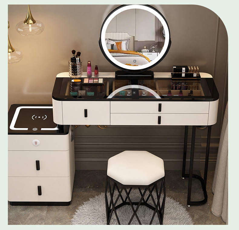 Bàn trang điểm thông minh đèn sạc không dây Bắc Âu sang trọng bàn trang điểm phòng ngủ tối giản hiện đại bàn trang điểm công chúa đa năng