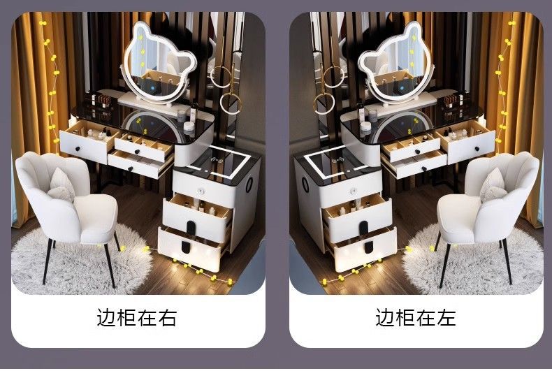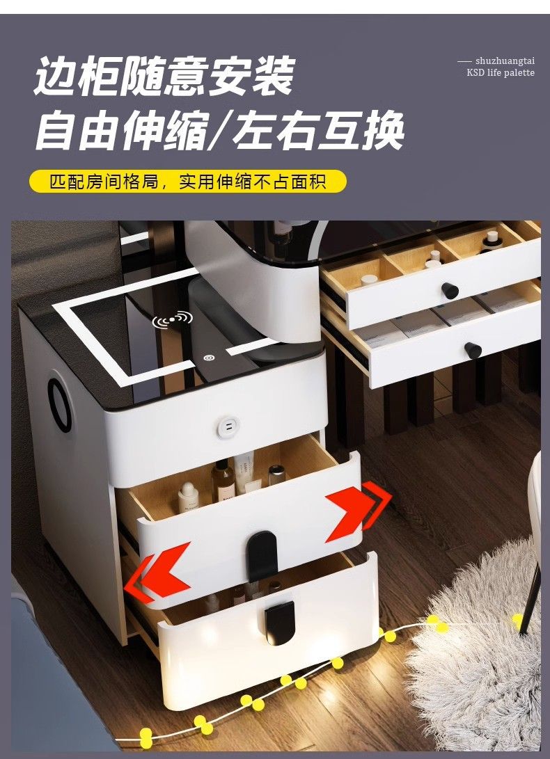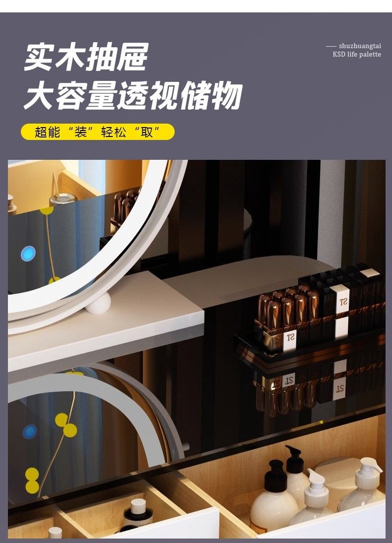 Bàn trang điểm thông minh đèn sạc không dây sang trọng Bắc Âu phòng ngủ bàn trang điểm hiện đại tối giản đa năng bàn trang điểm gỗ nguyên khối