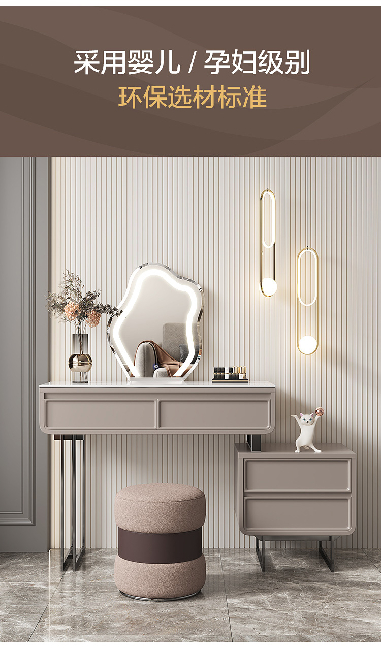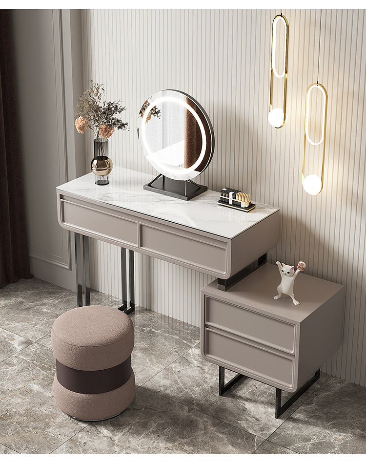 Bàn trang điểm tối giản bằng đá phiến phòng ngủ nhà thiết kế cao cấp ánh sáng sang trọng bàn trang điểm hiện đại tủ lưu trữ kính thiên văn tích hợp gỗ nguyên khối