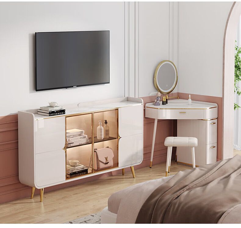 Bàn trang điểm xô tủ tích hợp góc màu kem phòng ngủ gia đình tối giản hiện đại căn hộ nhỏ góc bàn trang điểm