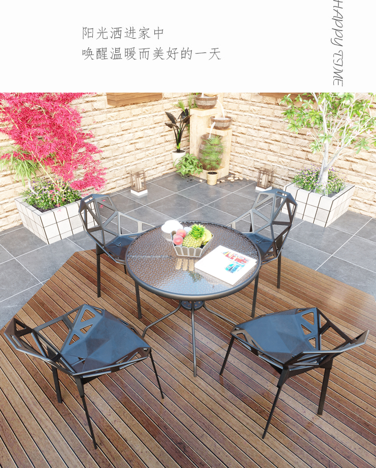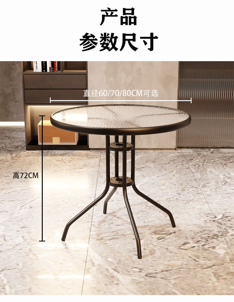 Bàn tròn đàm phán bằng kính cường lực Bàn ghế ngoài trời – BGCF-1157 – Mã sản phẩm BGCF-1157. Bàn tròn đàm phán bằng kính cường lực kết hợp bàn ghế ngoài trời bàn nhỏ hiện đại tối giản bàn ăn bằng sắt rèn bàn cà phê thông thường