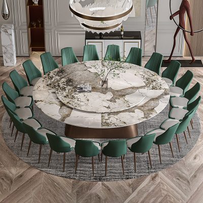 Bàn tròn điện lớn 20 người ánh sáng sang trọng căn hộ lớn bàn ăn tròn nhà hàng biệt thự bàn tròn bàn ăn tròn bằng đá cẩm thạch Ý