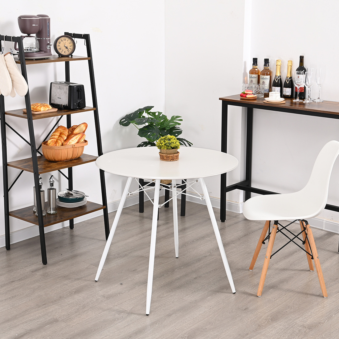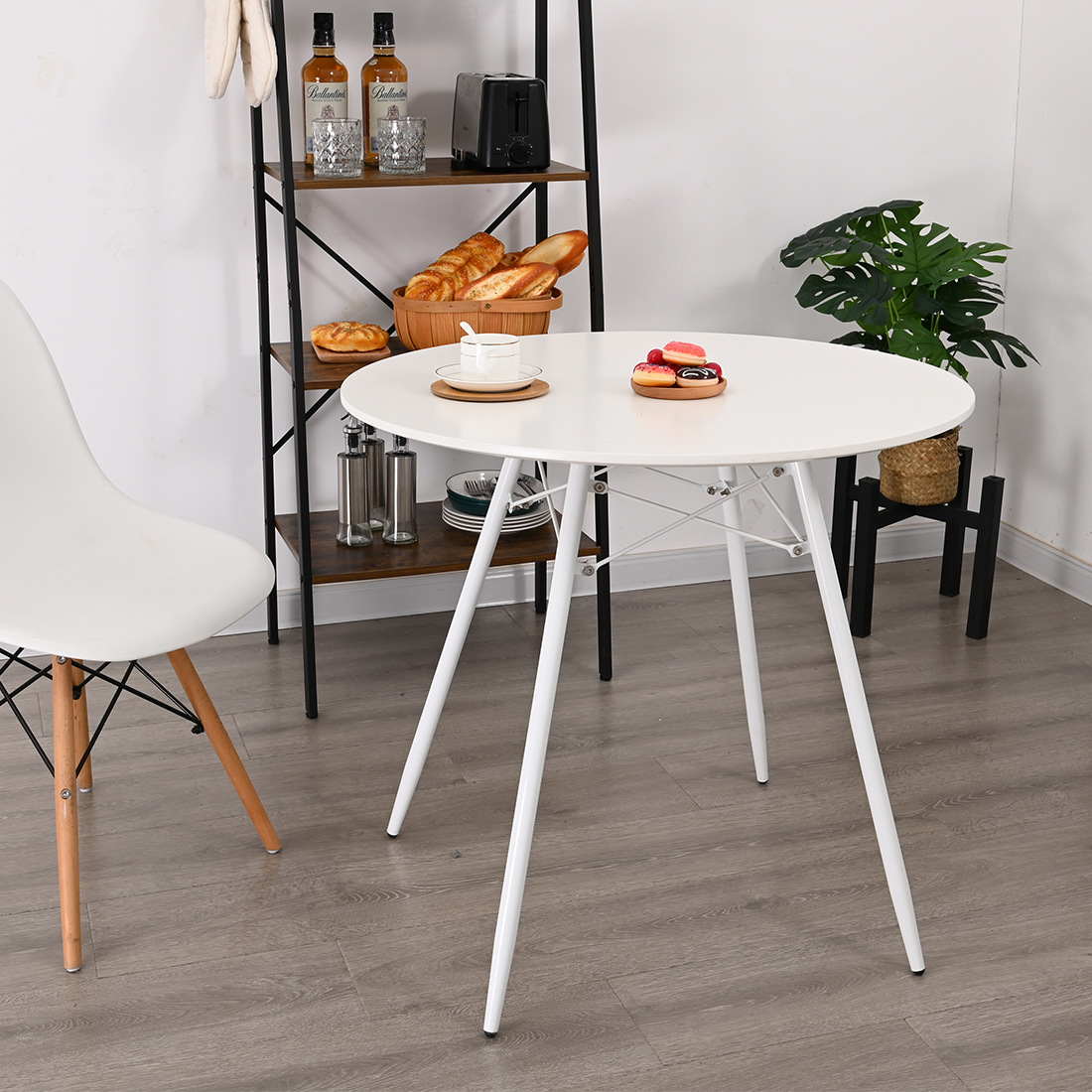 Bàn tròn Eames trắng chân kim loại Bàn trà sữa sáng tạo Bàn cà phê ban công đơn giản mời khách thảo luận giải trí Bàn gỗ nguyên khối