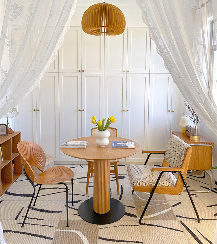 Bàn tròn gỗ đặc phong cách kem phòng nhỏ nhà Bàn ăn hiện – BGCF-777 – Mã sản phẩm BGCF-777. Bàn tròn gỗ đặc phong cách kem căn hộ nhỏ nhà bàn ăn hiện đại kết hợp ghế quán cà phê đăng nhập bàn tròn nhỏ bàn ăn