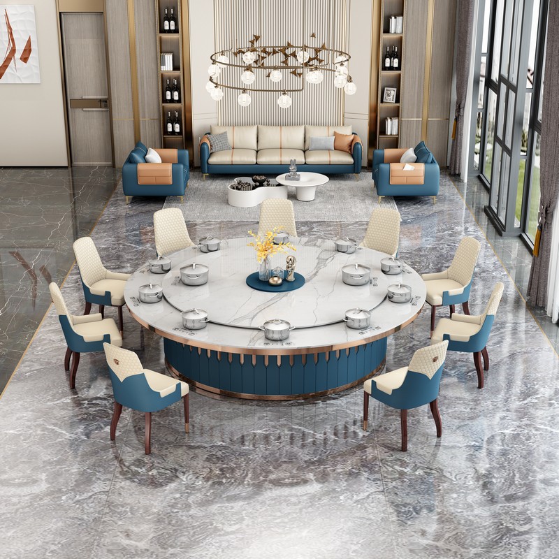 Bàn tròn lớn của khách sạn có bàn xoay tự động cho 15 người và 20 người cho biệt thự thương mại bàn tròn lớn bằng đá kết hợp bàn ăn