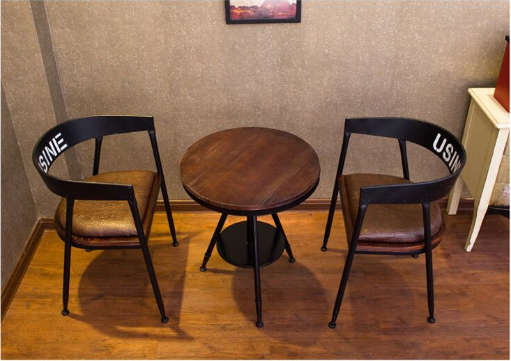Bàn tròn nhỏ sắt giải trí ban công bàn ghế cafe kết hợp sáng tạo cá tính đơn giản quán trà sữa bàn ghế gỗ nguyên khối