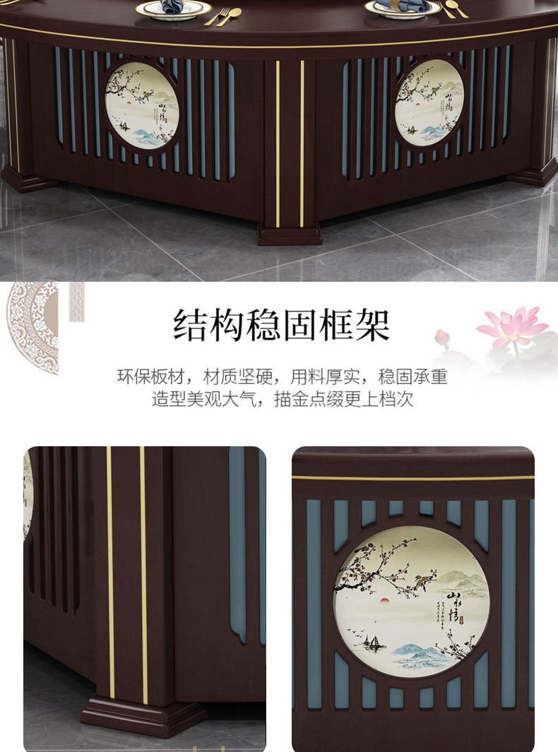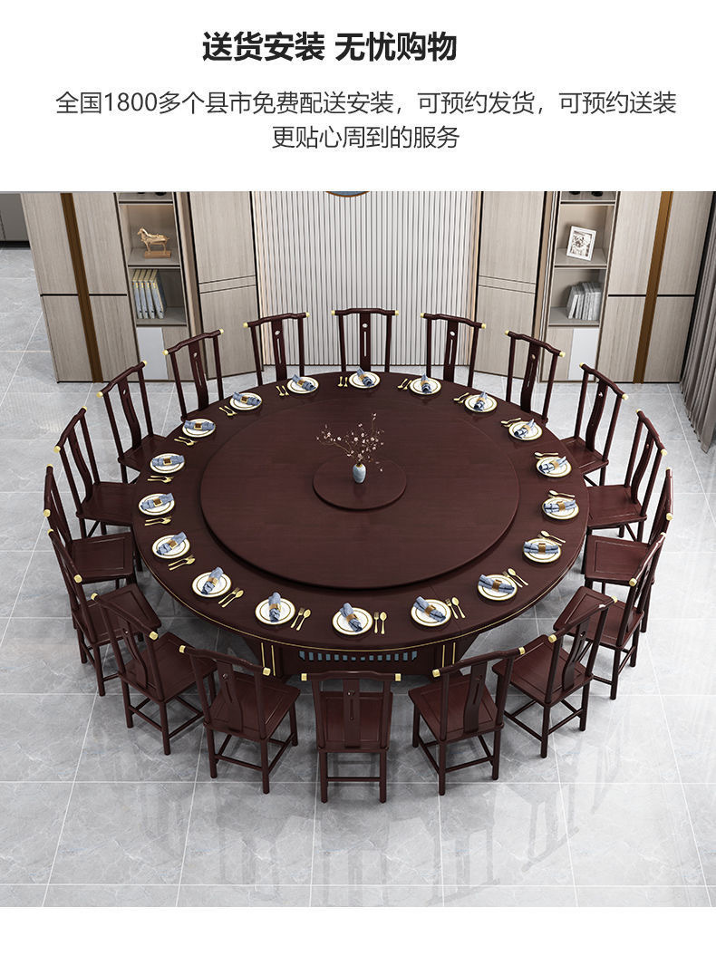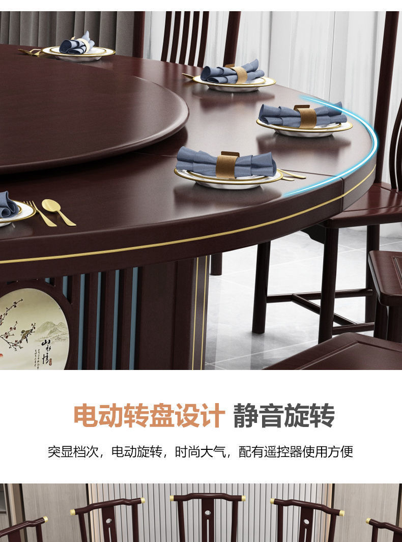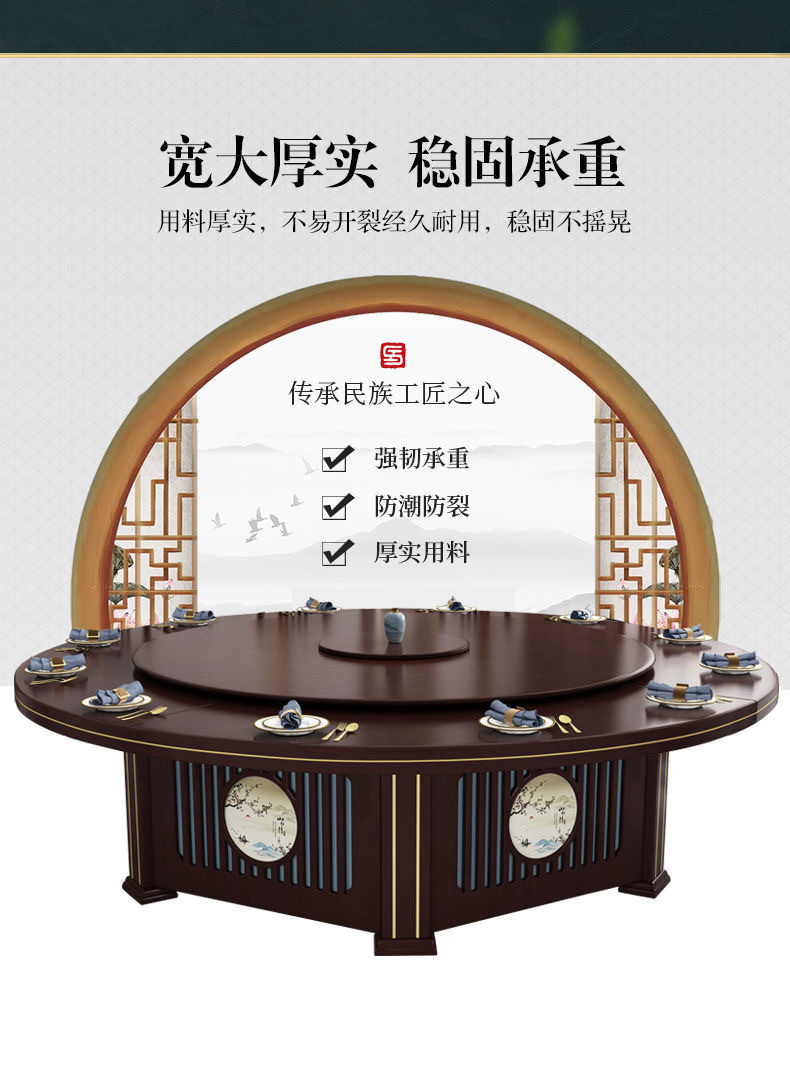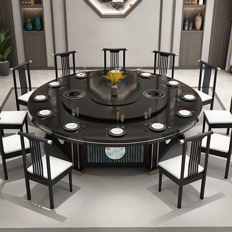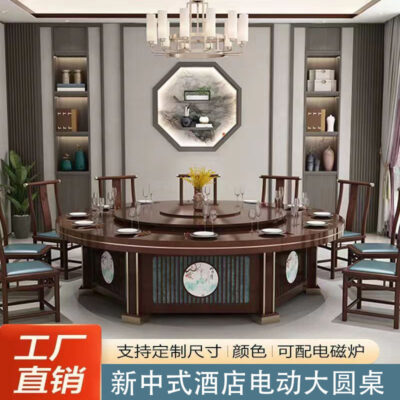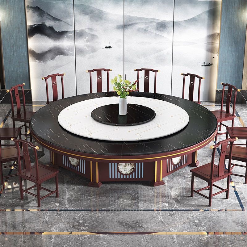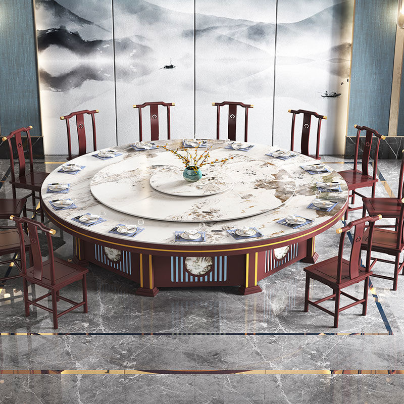 Bàn tròn xoay tự động lớn kiểu Trung Quốc mới Bàn ăn riêng bàn tròn giả đá cẩm thạch khách sạn Nhà máy sản xuất đồ nội thất B&B bán hàng trực tiếp