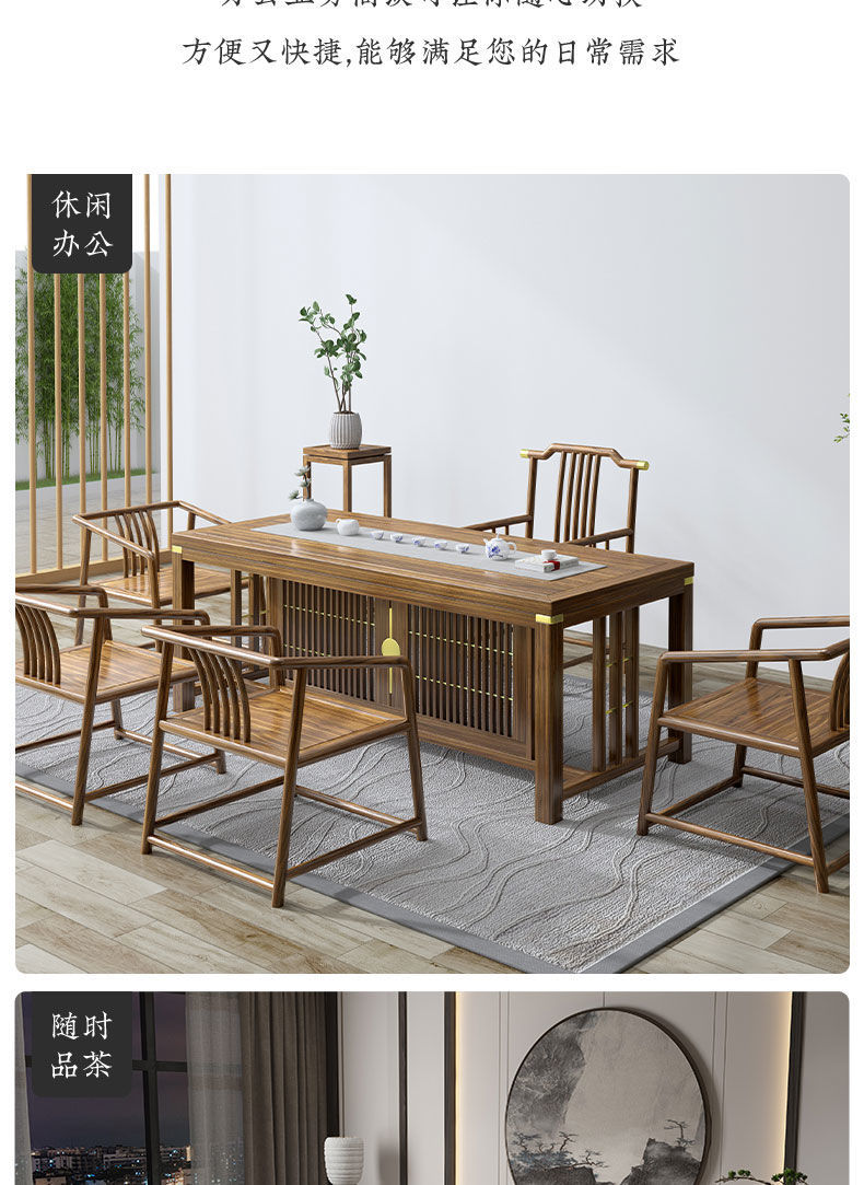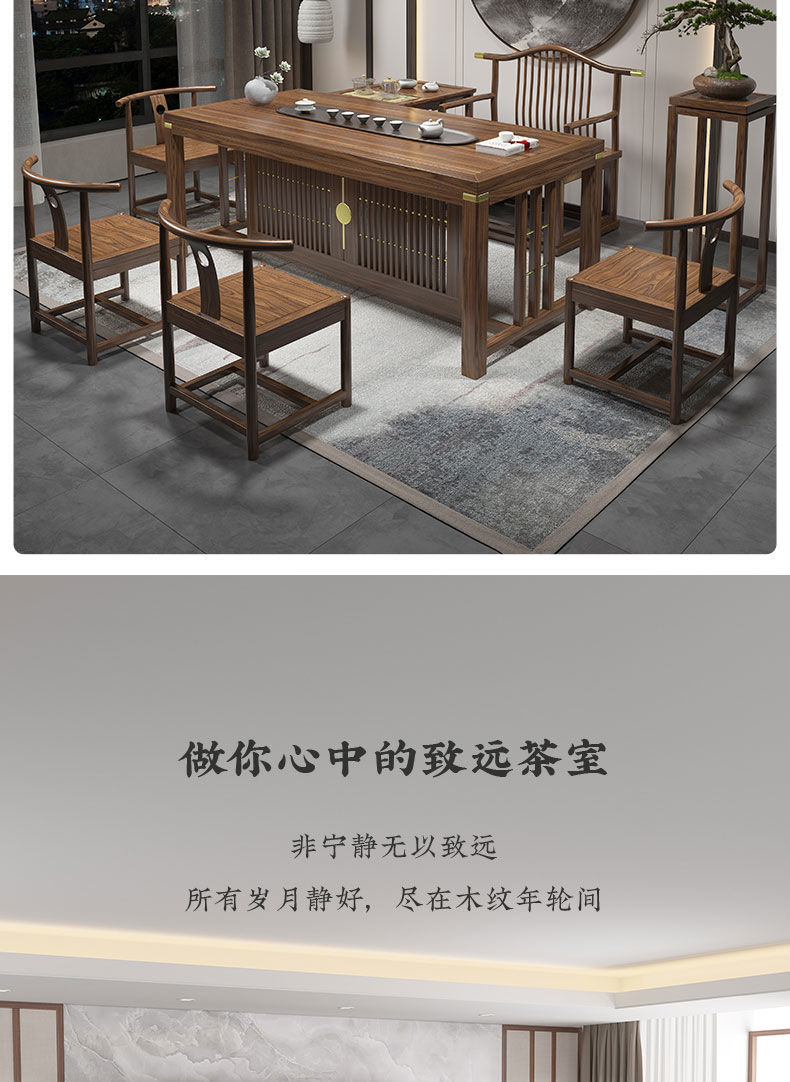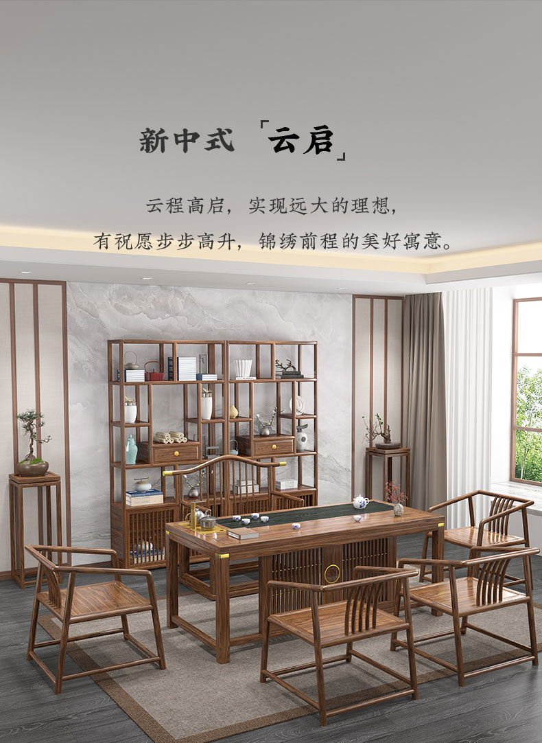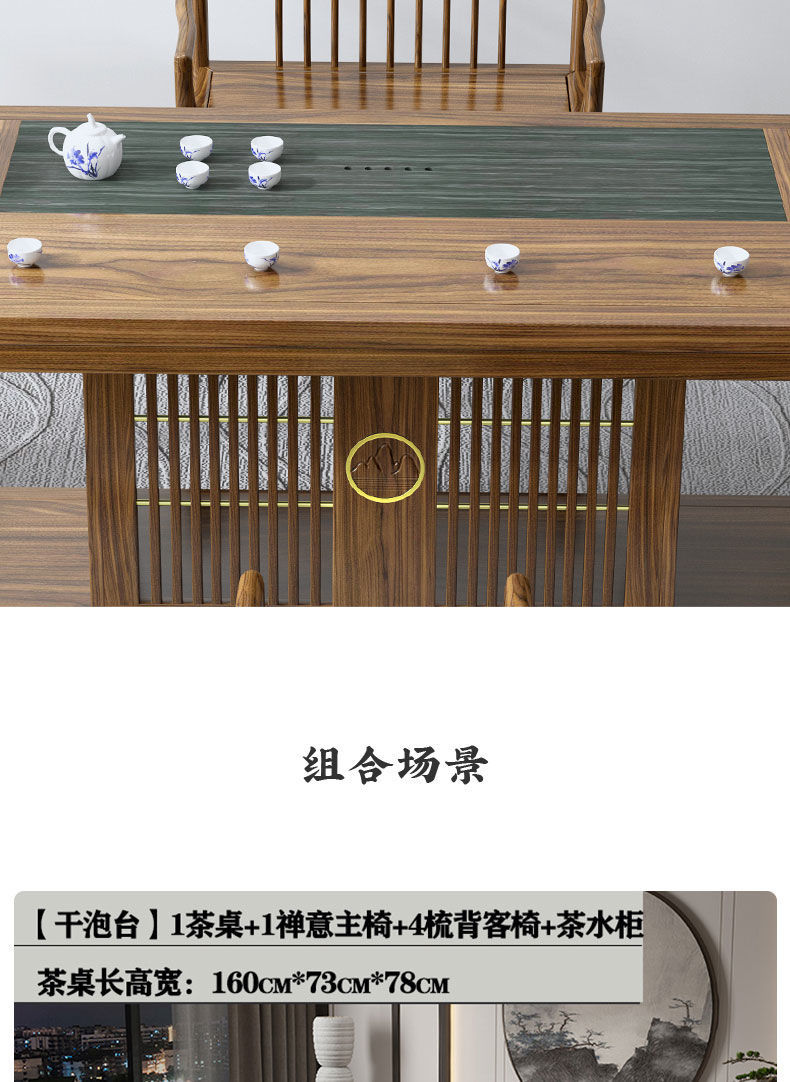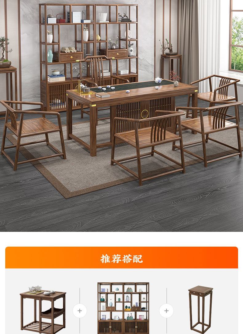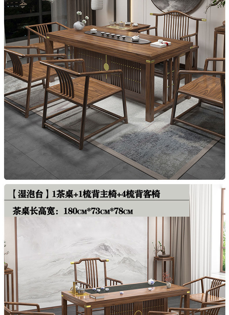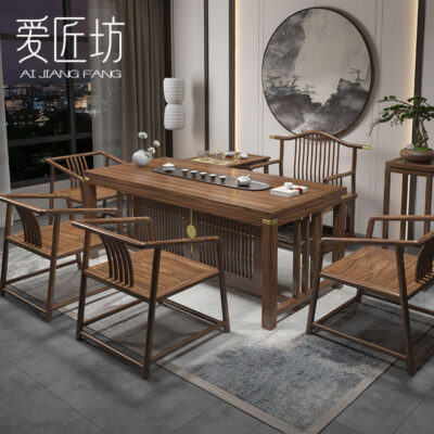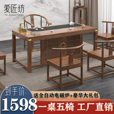 Bán trực tiếp tại nhà máy] Bàn trà gỗ nguyên khối và ghế kết hợp Bàn trà văn phòng Bàn trà kiểu Trung Quốc mới một bộ Bàn trà cây du