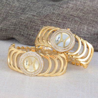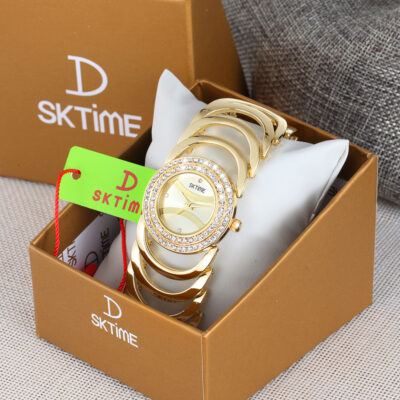 Bán trực tiếp tại nhà máy Đồng hồ đeo tay tiếng Anh nạm kim cương thời trang SKTIME dây đeo hợp kim rỗng Đồng hồ nữ đồng hồ thương hiệu hợp thời trang