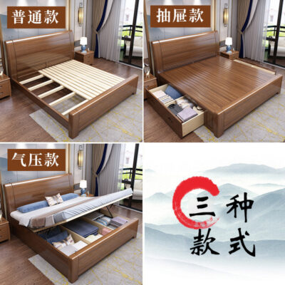 Bán trực tiếp tại nhà máy Giường gỗ óc chó nguyên khối Giường đôi 1,8m hiện đại tối giản Giường đơn 1,5m nội thất phong cách Trung Quốc mới