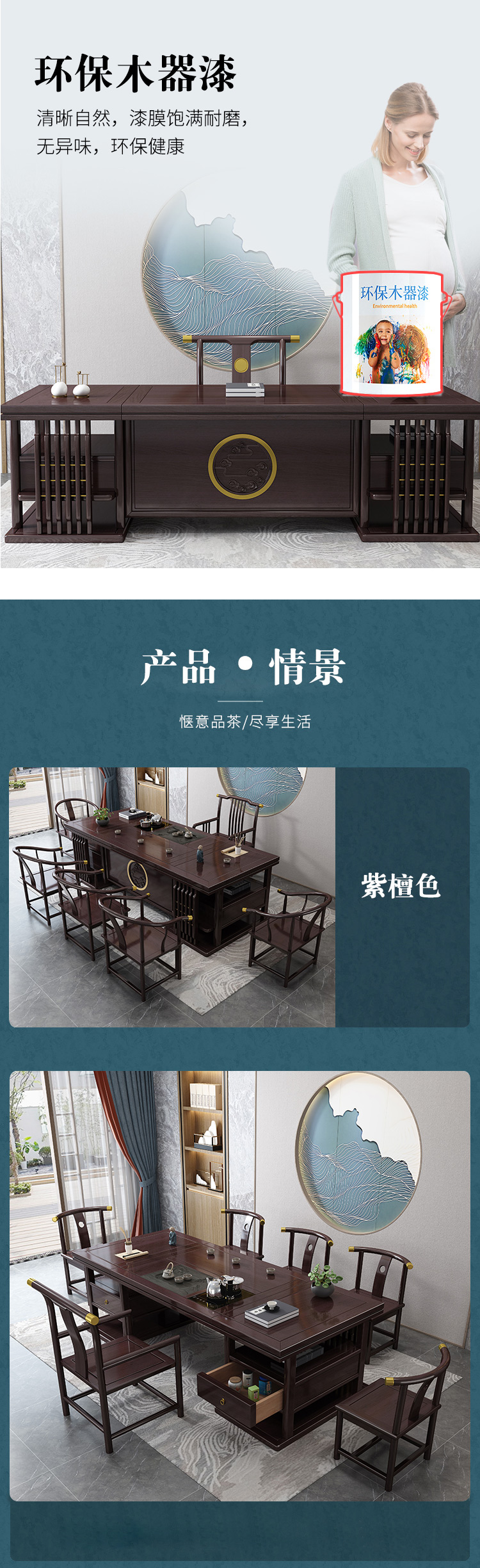 Bàn và ghế kết hợp bàn trà bằng gỗ rắn Bộ bàn trà Một phòng khách đơn giản hiện đại Phòng khách Phòng khách Kung Fu