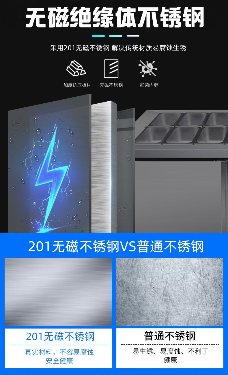 Bàn xà lách có rãnh thương mại bàn thao tác làm lạnh bàn pizza phun nước món ăn phụ tủ lạnh câu cá trái cây tủ trưng bày phun