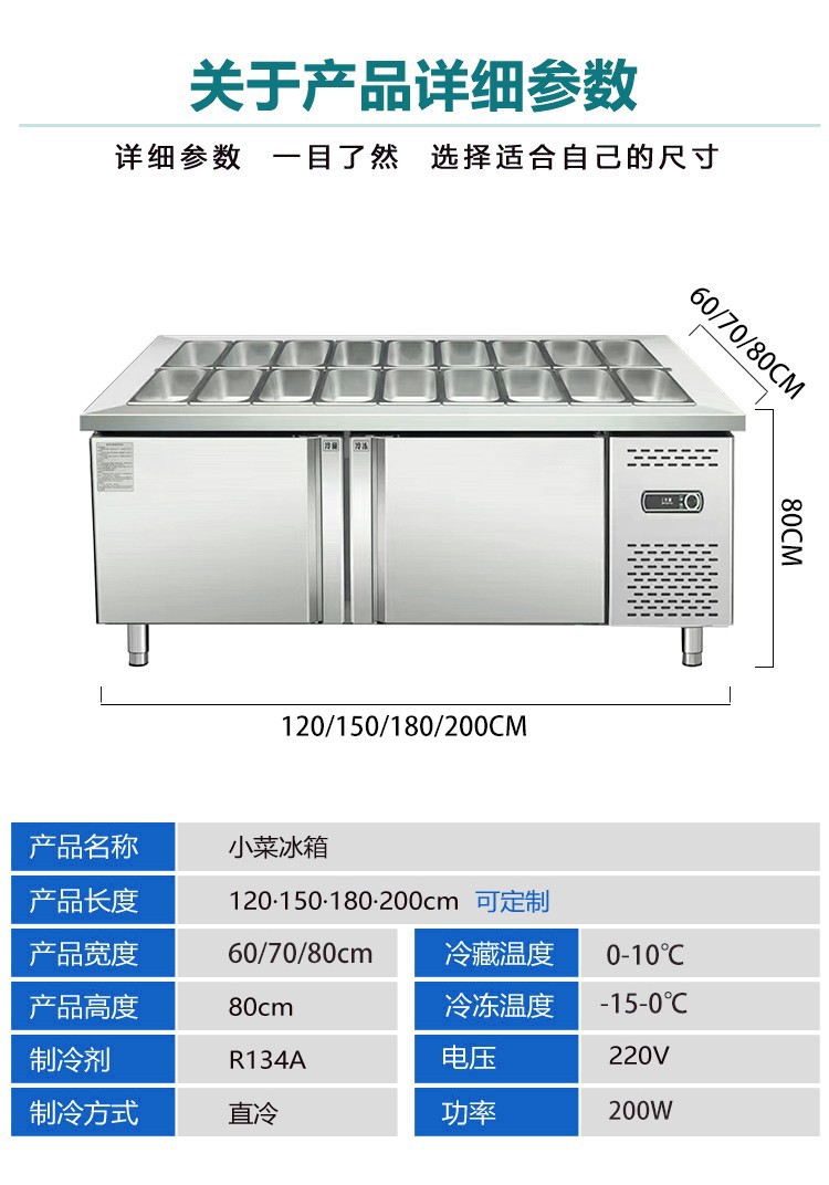 Mã số: SLT Loại: Bàn salad Thương hiệu: Đầu tư khác Công ty khởi nghiệp: Startups Dịch vụ hậu mãi: Bảo hành một năm Đối tượng áp dụng: Thực phẩm Thông số kỹ thuật: Kích thước khác Tùy chỉnh/Độc lập 120*80*80 Làm lạnh/Độc lập 150*80 *80 Làm lạnh/độc lập 180*80 *80 làm lạnh/độc lập 200*80*80 làm lạnh/đơn 200*80*80 làm lạnh