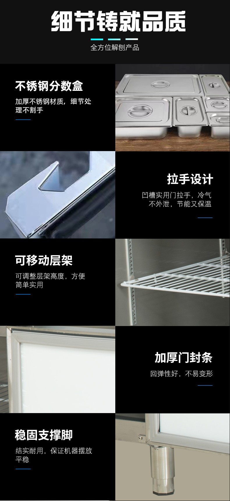 Bàn xà lách có rãnh thương mại bàn thao tác làm lạnh bàn pizza phun nước món ăn phụ tủ lạnh câu cá trái cây tủ trưng bày phun
