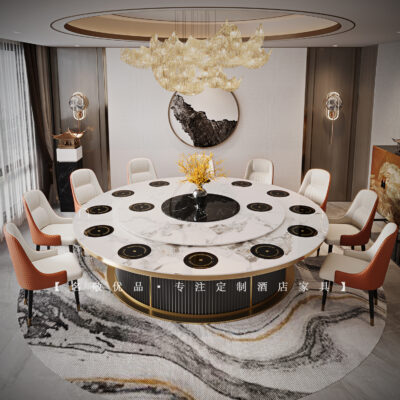Bàn xoay điện đá phiến với bàn xoay tự động khách sạn bàn lớn Bàn ăn câu lạc bộ và ghế khách sạn bàn tròn lớn là sản phẩm nổi bật trong dòng bàn ăn nhập khẩu, thiết kế hiện đại và sang trọng, phù hợp với nhiều không gian nội thất cao cấp.