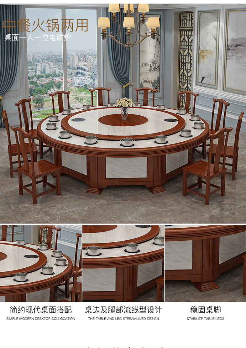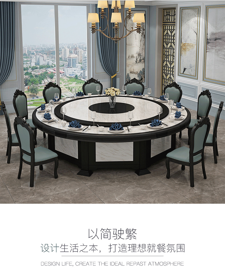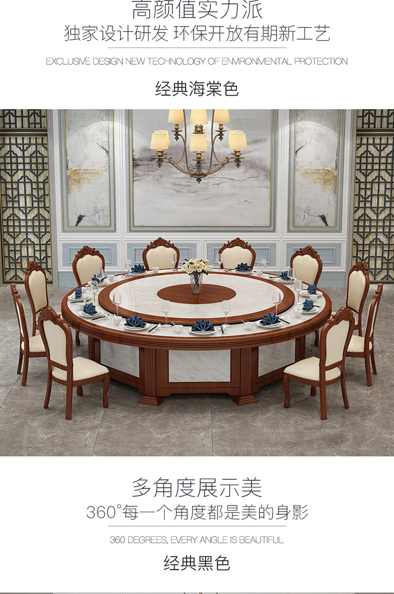 Bàn xoay điện khách sạn bàn tròn lớn 15 người 20 người bàn lẩu khách sạn tròn bàn xoay tự động bàn 3 mét – Bàn ăn nhập khẩu cao cấp