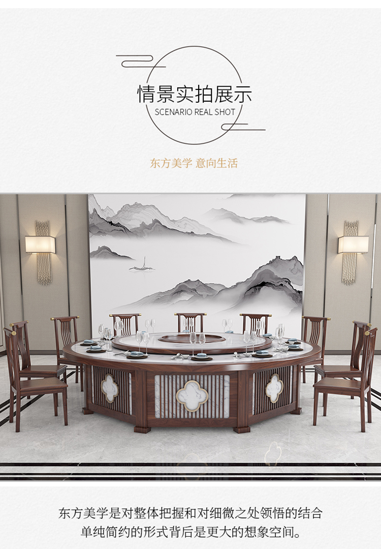Bàn xoay điện khách sạn bàn tròn lớn nhà hàng gỗ đặc 15 người 20 bàn xoay tự động với bếp từ bàn ghế ăn
