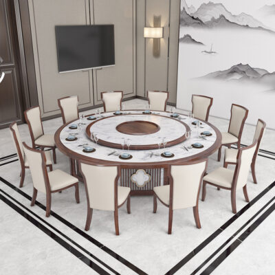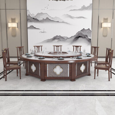 Bàn xoay điện khách sạn bàn tròn lớn nhà hàng gỗ đặc 15 người 20 bàn xoay tự động với bếp từ bàn ghế ăn – Bàn ăn nhập khẩu cao cấp