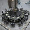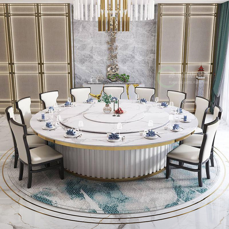 Bàn xoay điện khách sạn đá phiến bàn tròn lớn nhà hàng khách sạn 15 người 20 kết hợp bàn lẩu đá cẩm thạch và ghế – Bàn ăn nhập khẩu cao cấp